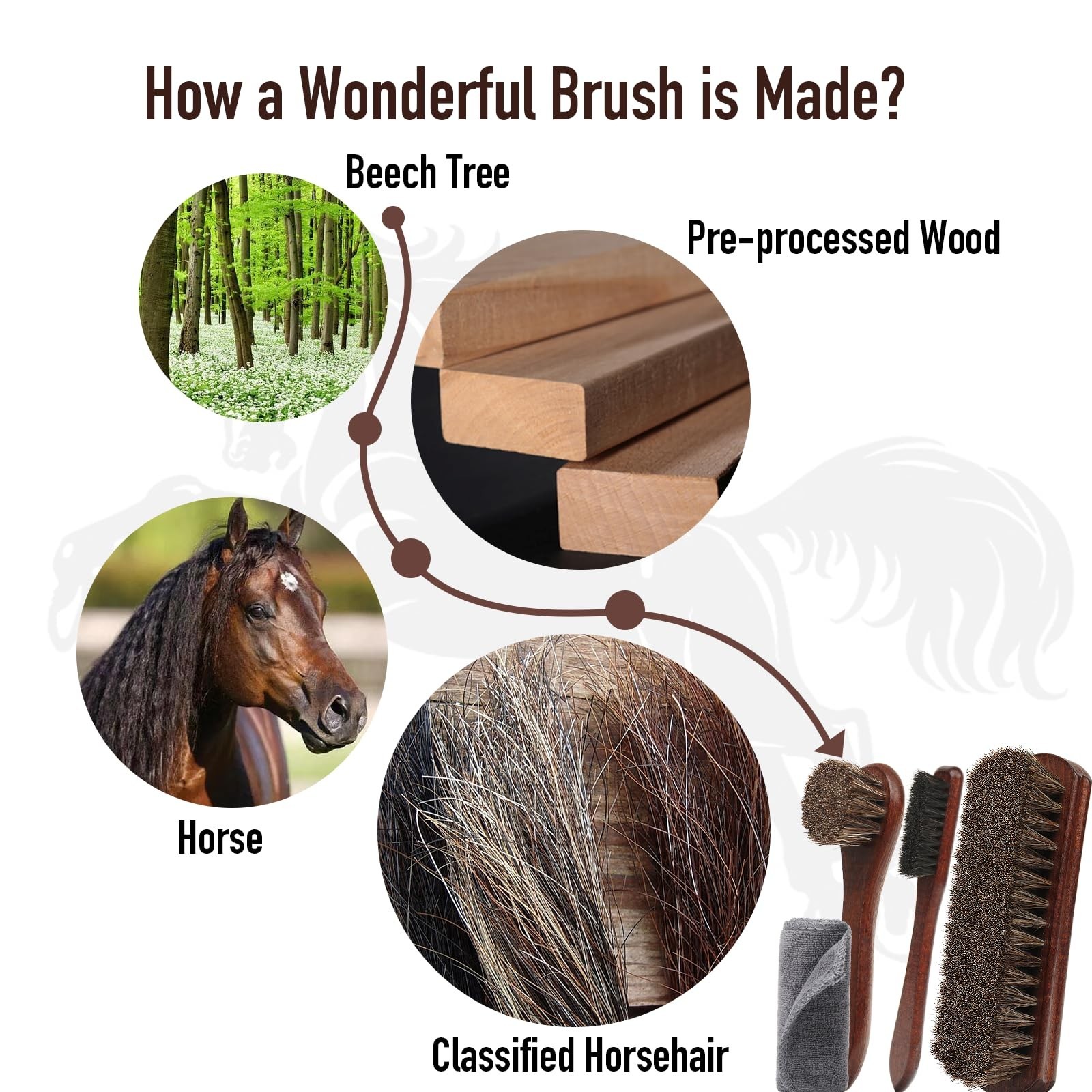 4-Piece 100 Horse Hair Shoe Brush Kit Premium Dauber Applicators Leather Car...