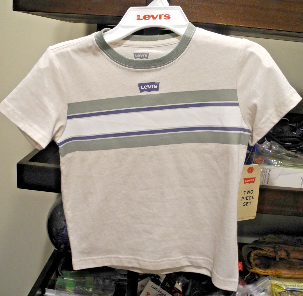 как выглядит Levis Boys 2 Pc Set: Lt. Green Shorts Cream/Green Striped S/S T-Shirt Size 7 фото