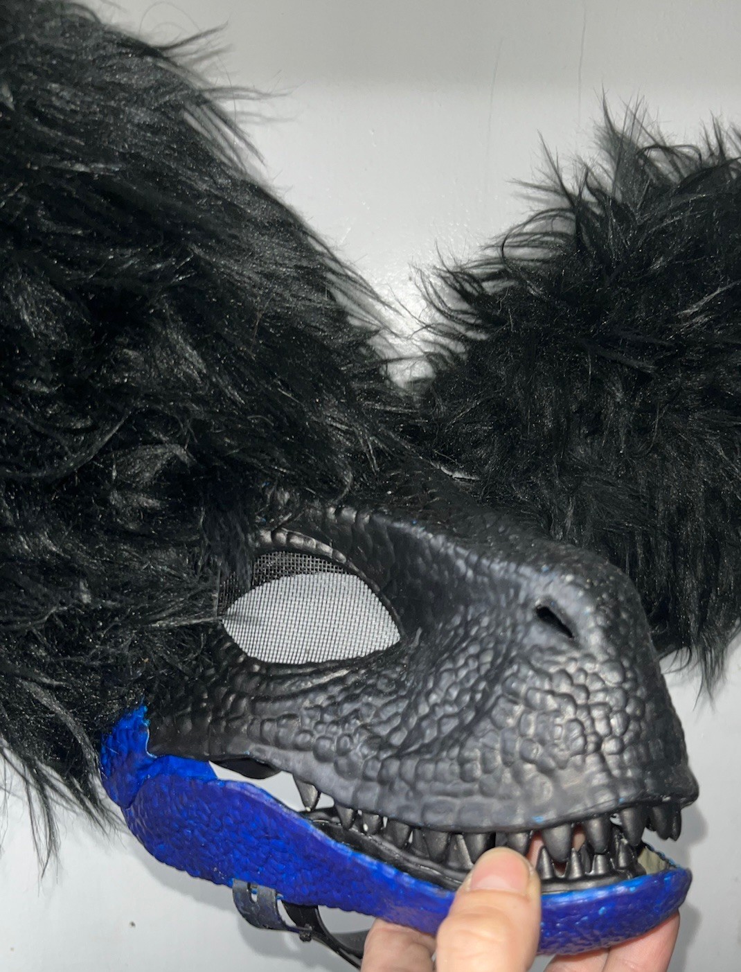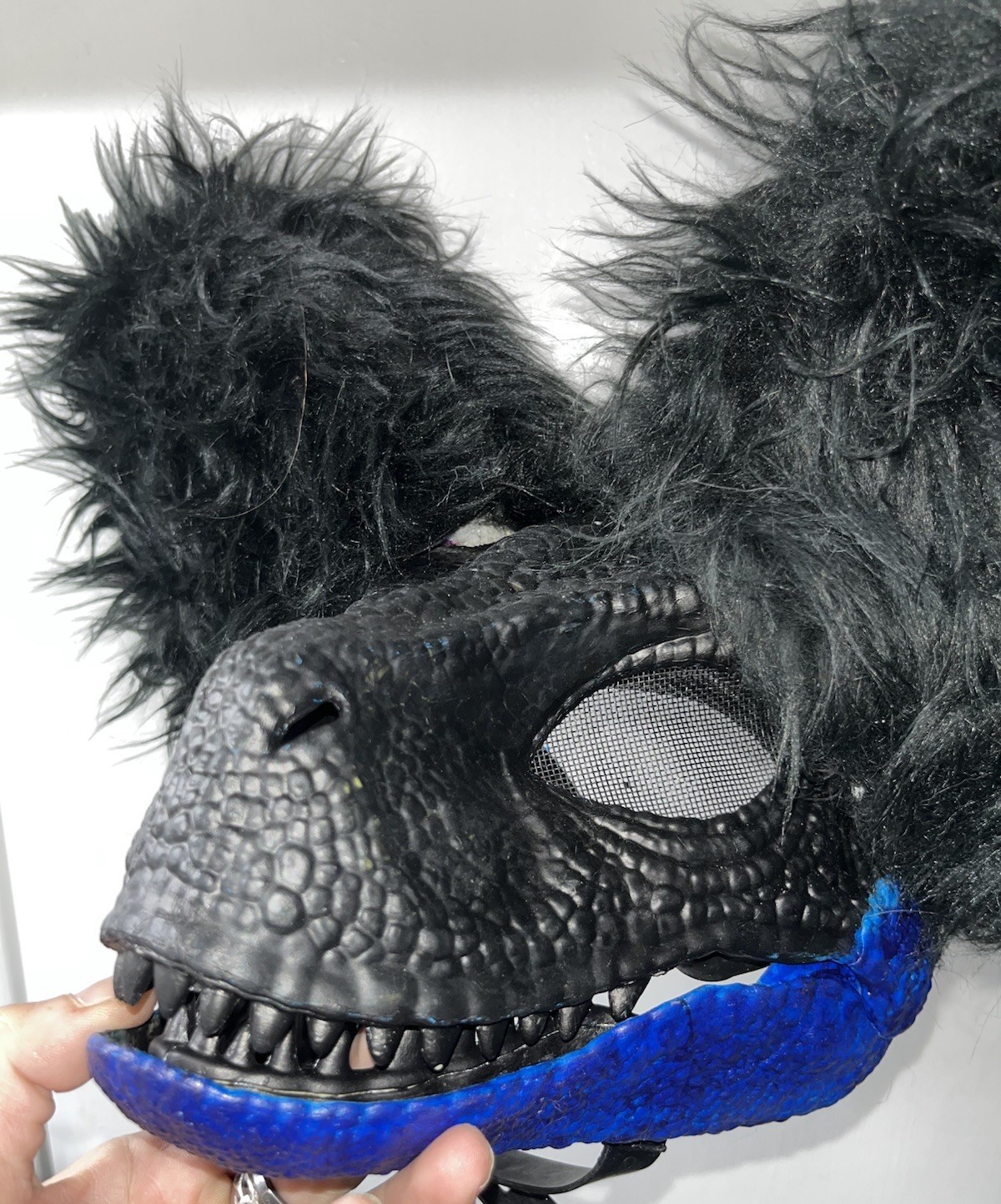 Dino Mask Moving Jaw Large Furry Ears Blue Black Face Mask Con Cosplay
