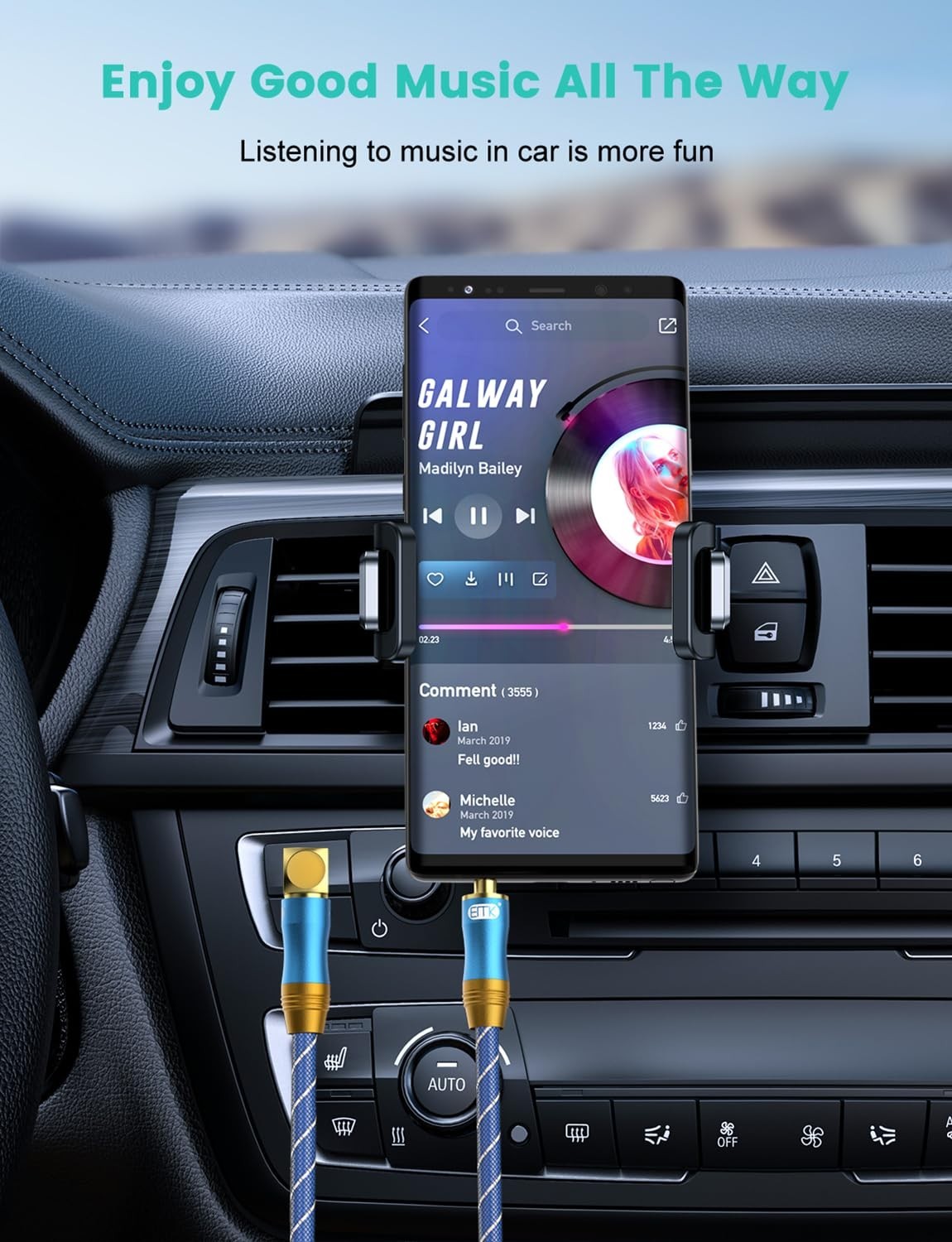 90 Degree Right Angle Aux Cable - 24K Gold-Plated,Sound Quality Audio Stere...