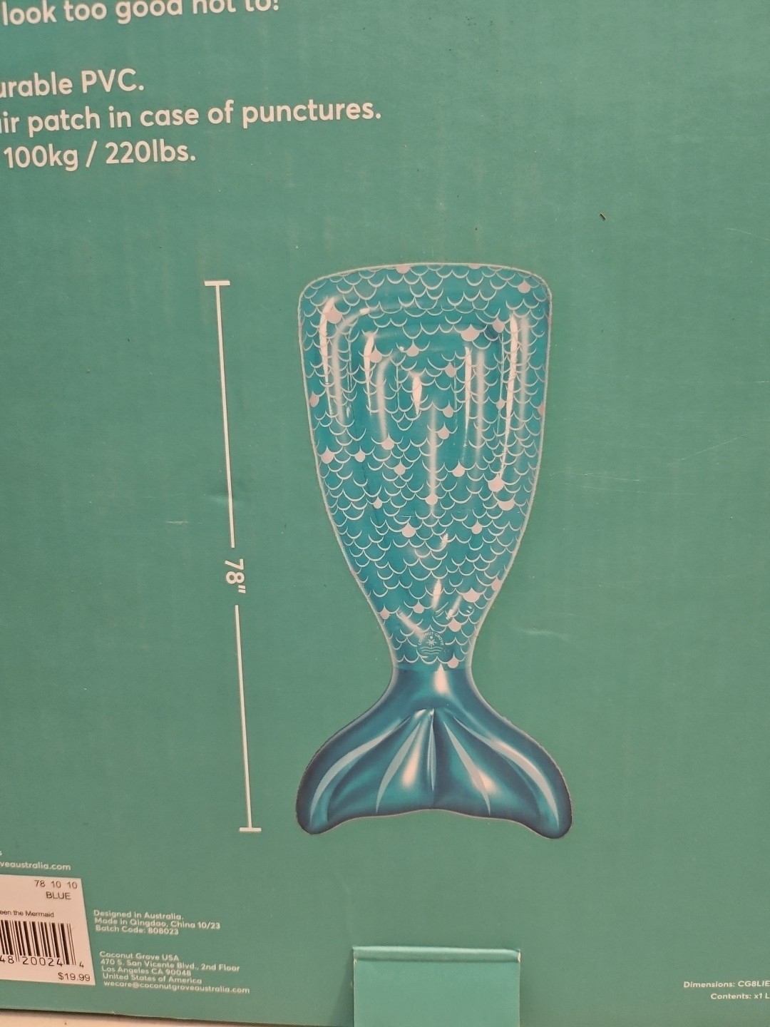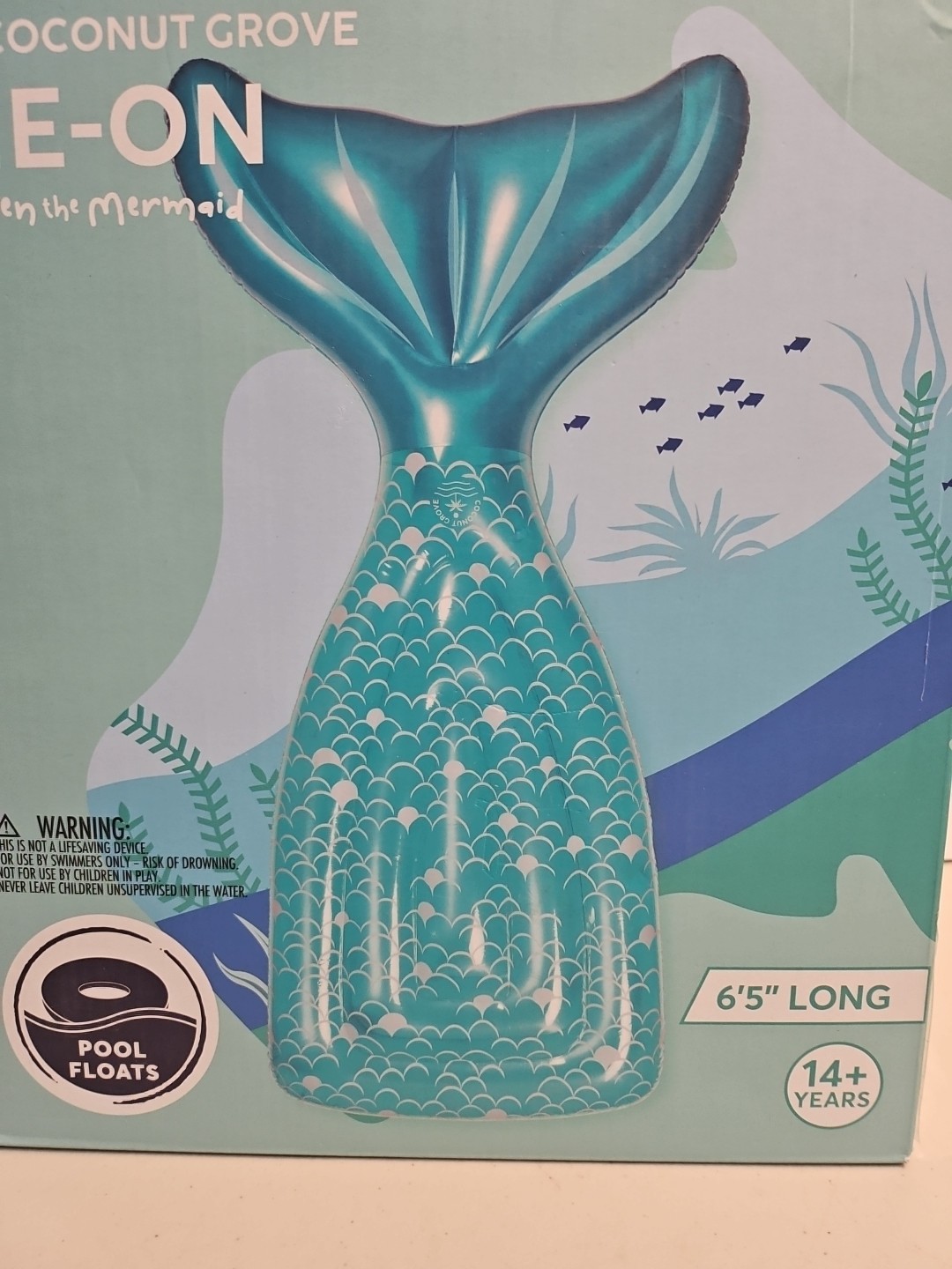 Mermaid Tail Pool Float Lie-on Coconut Grove Swim Aqua Blue