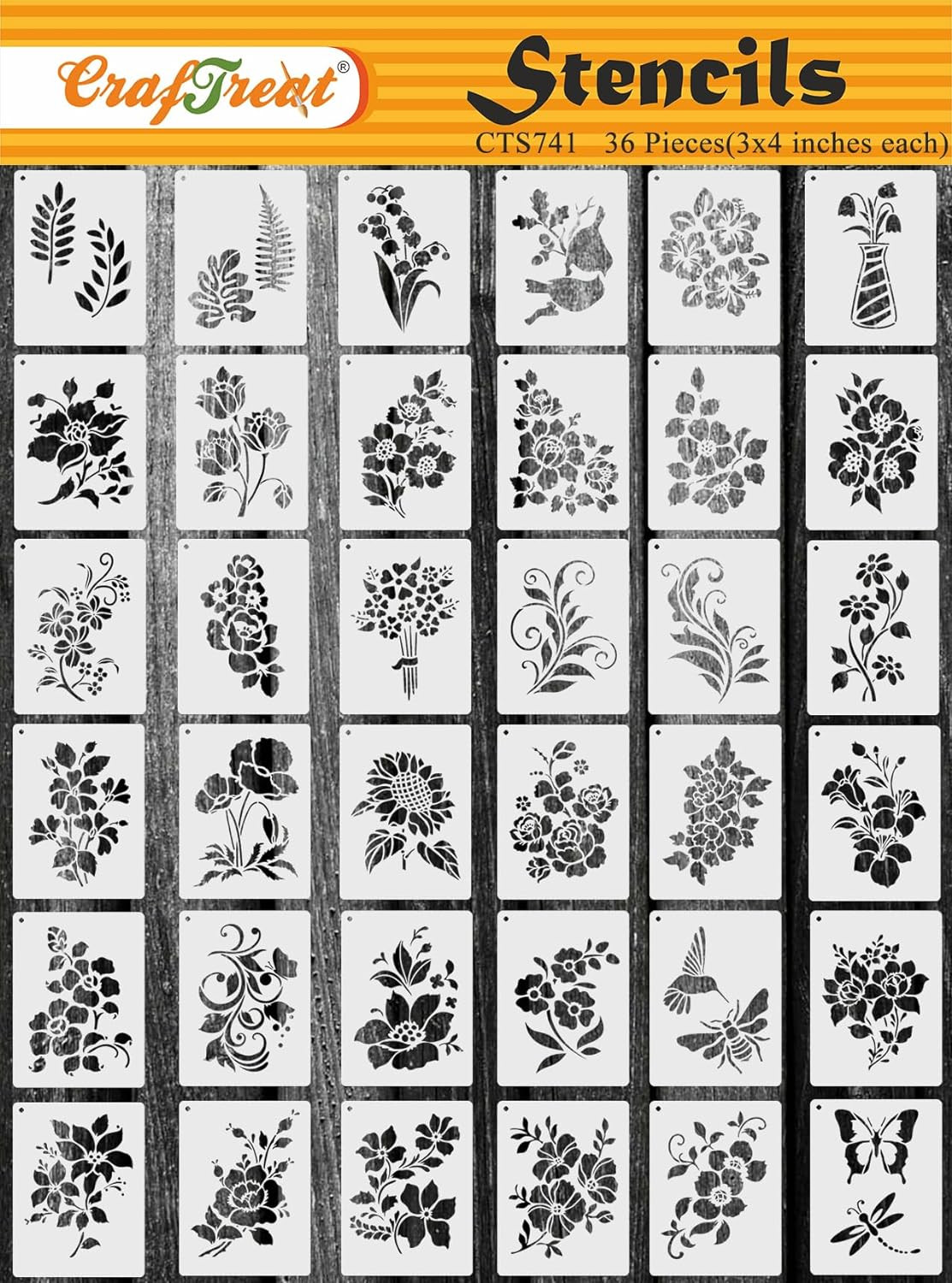 Reusable 36-Piece Flower Stencils for Painting 3X4 , DIY Floral Stencils for Wo