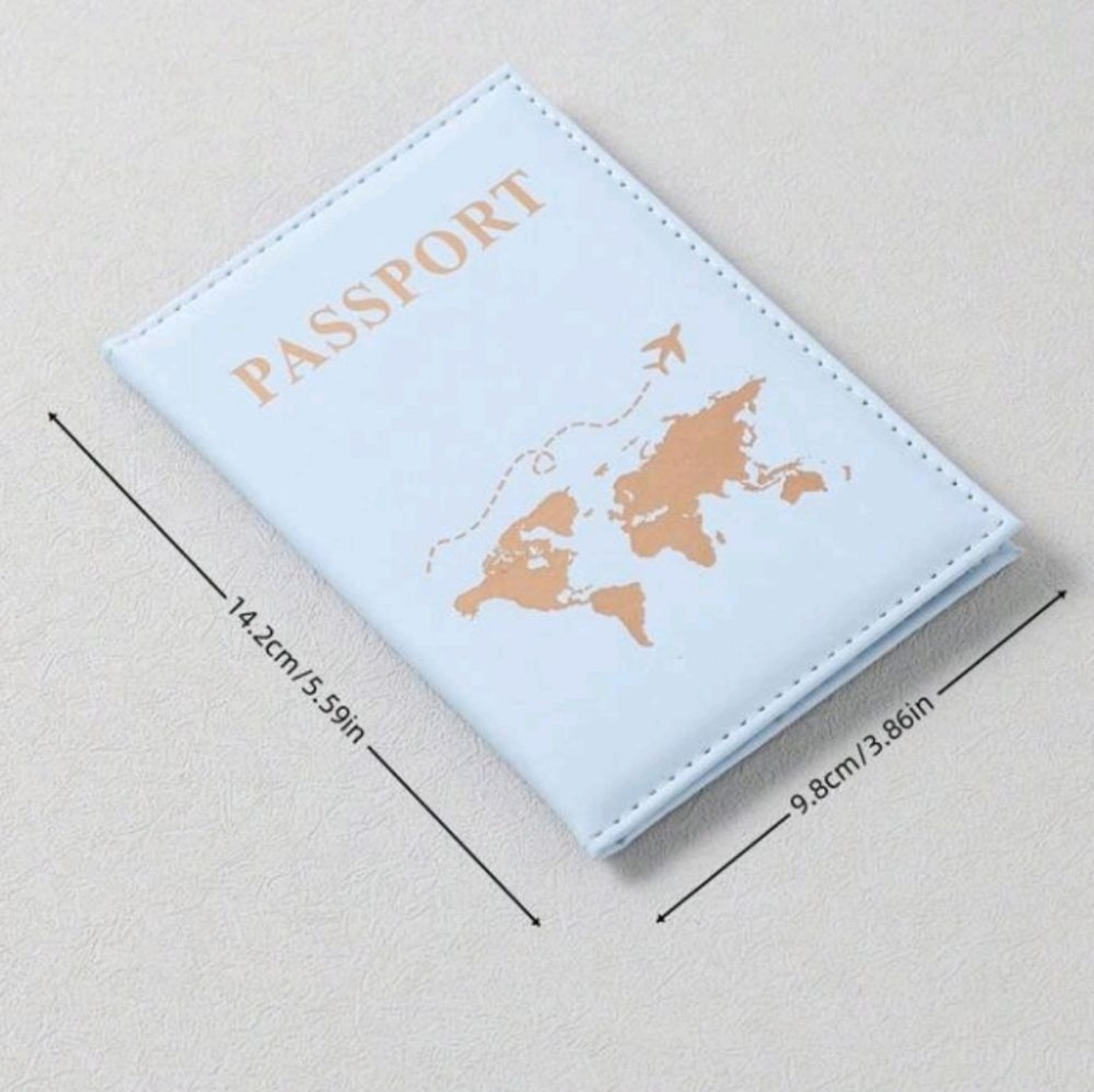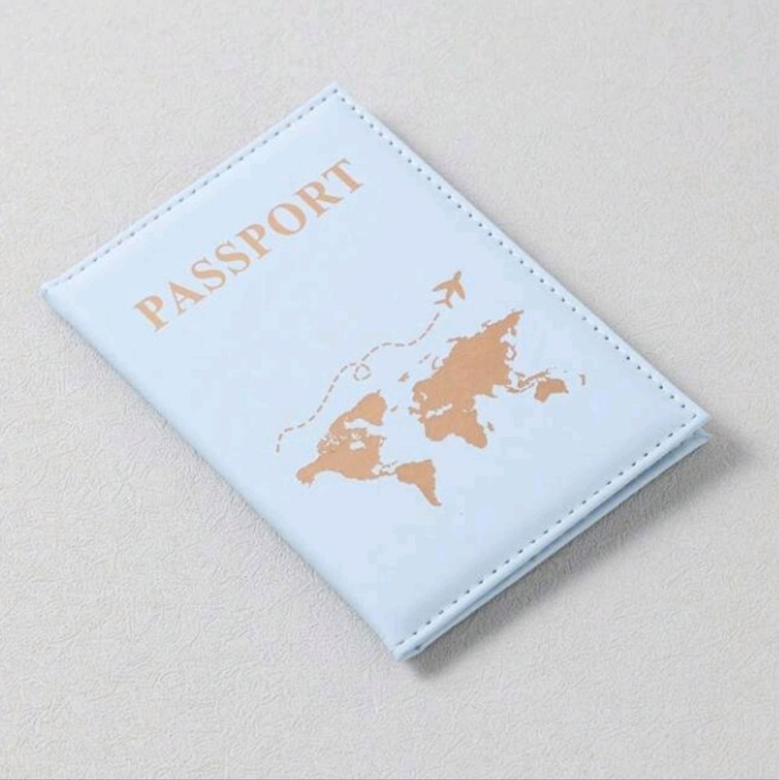 как выглядит Light Blue Passport Holder Cover with Gold World Map фото