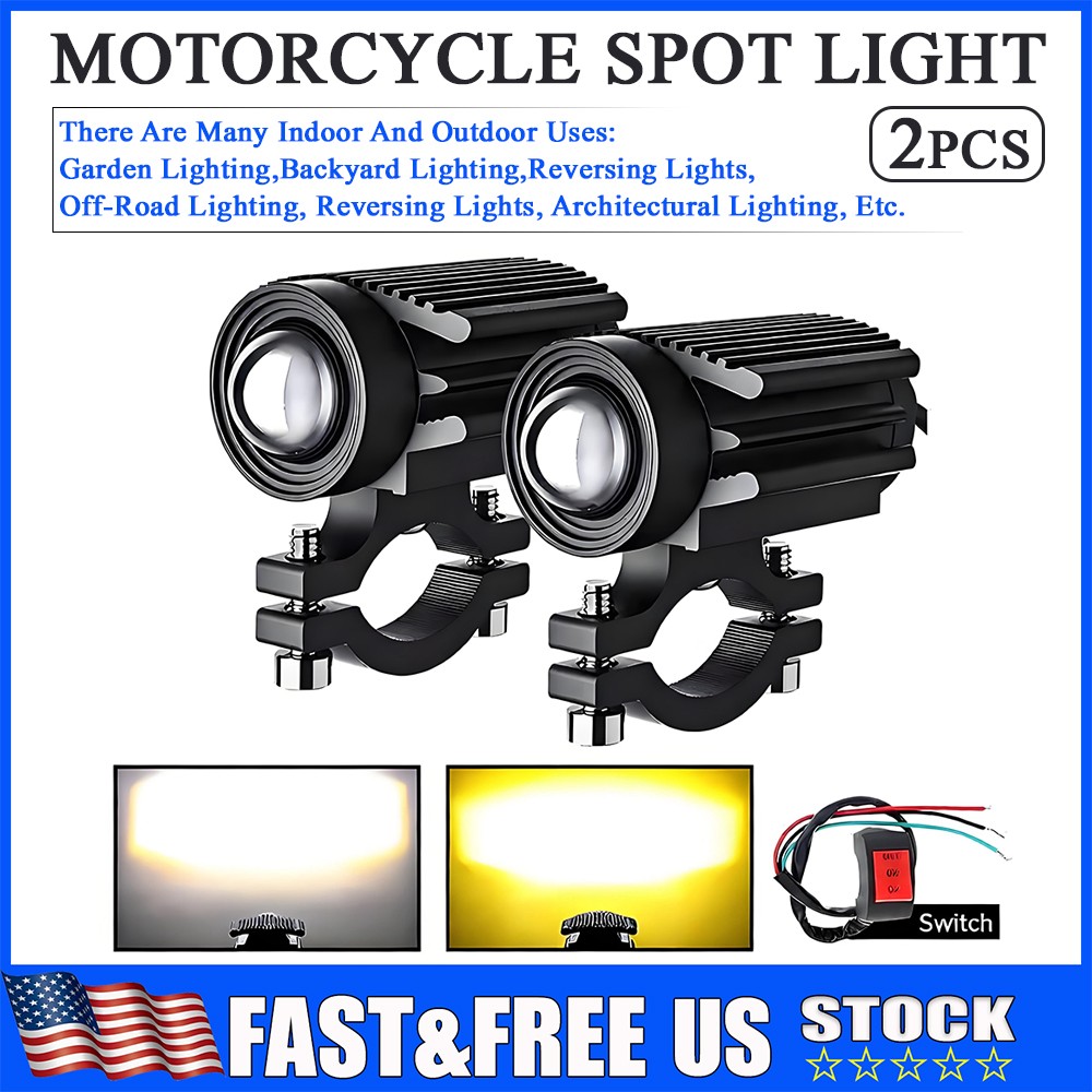 2x LED Motorcycle Spot Lights Auxiliary Headlight Driving Fog Lamp Yellow White