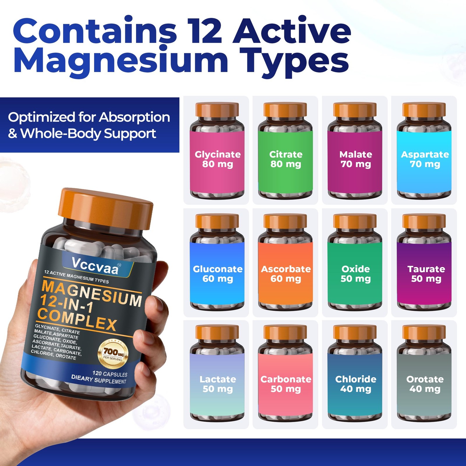Magnesium Complex 700mg 12-in-1 Supplement 120 Count Pack of 1
