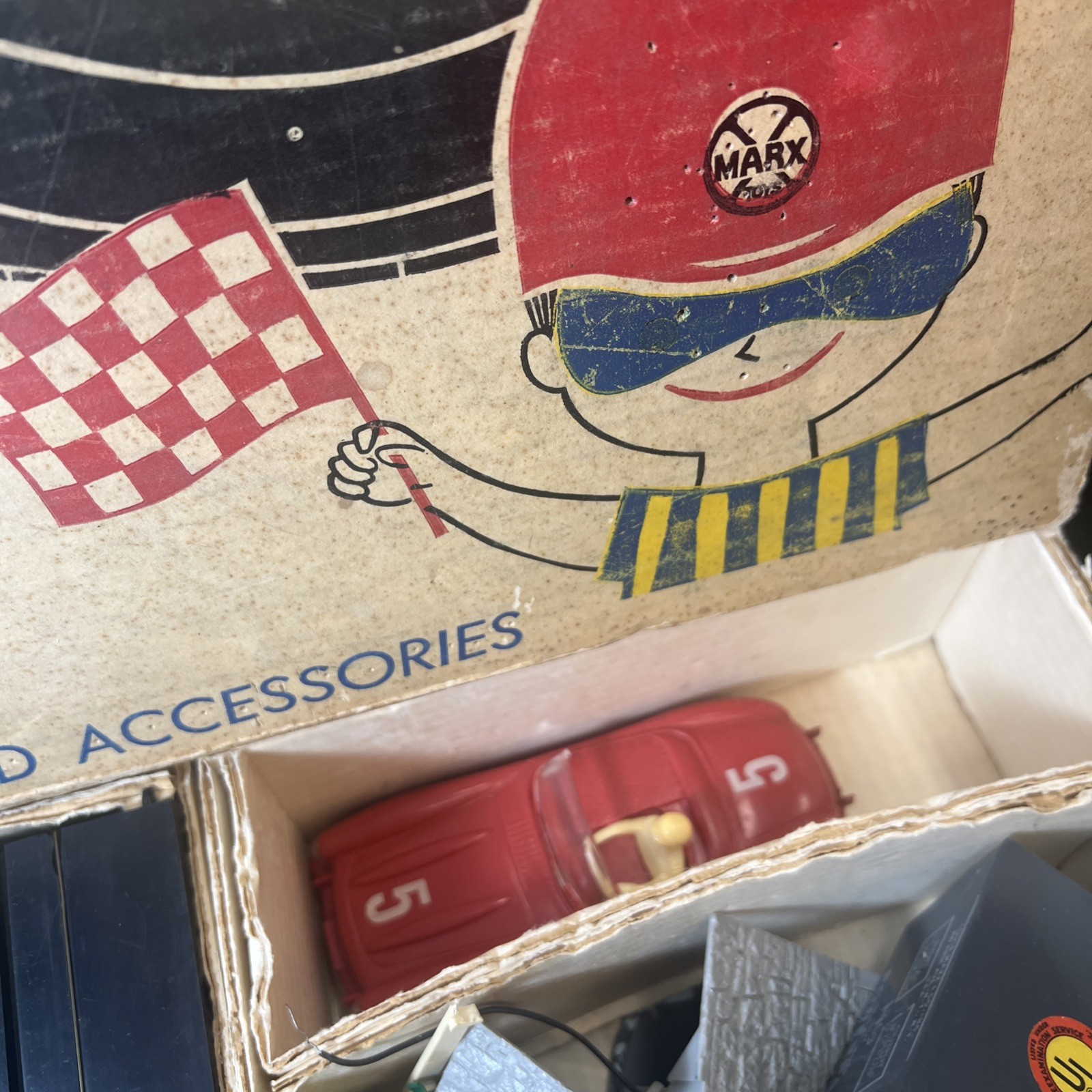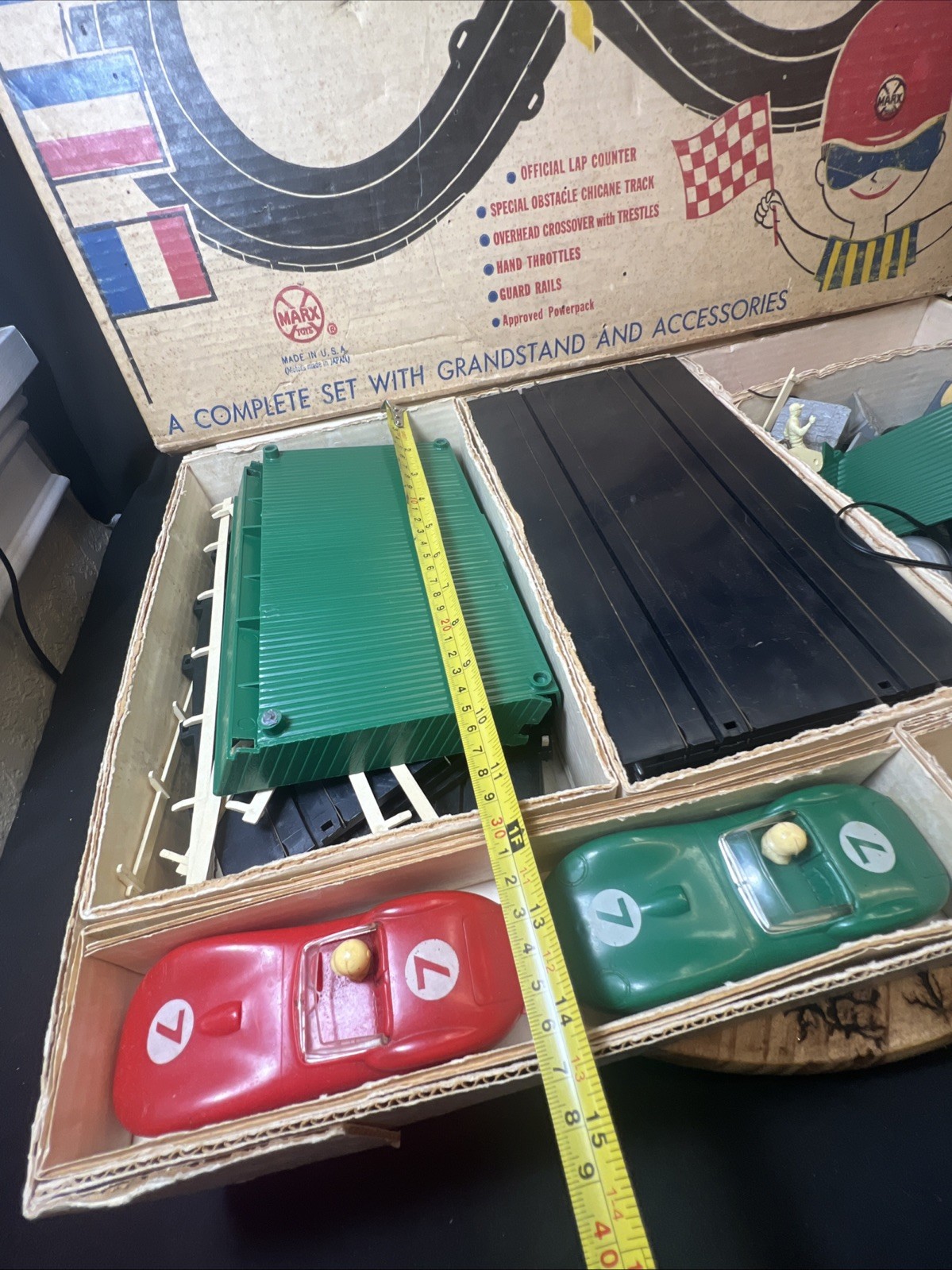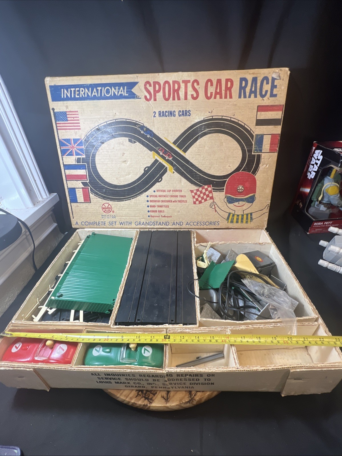 как выглядит Vintage Marx International Sports Car Race Set 22510 w/ Box, 2 Race Cars, Track фото