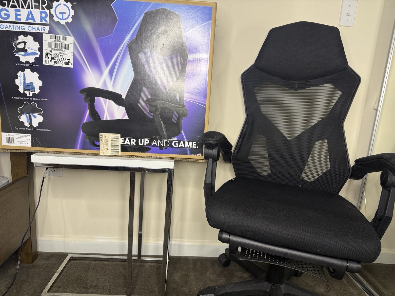 Gamer Gear Black Adjustable Ergonomic Gaming Chair Mesh Back Footrest