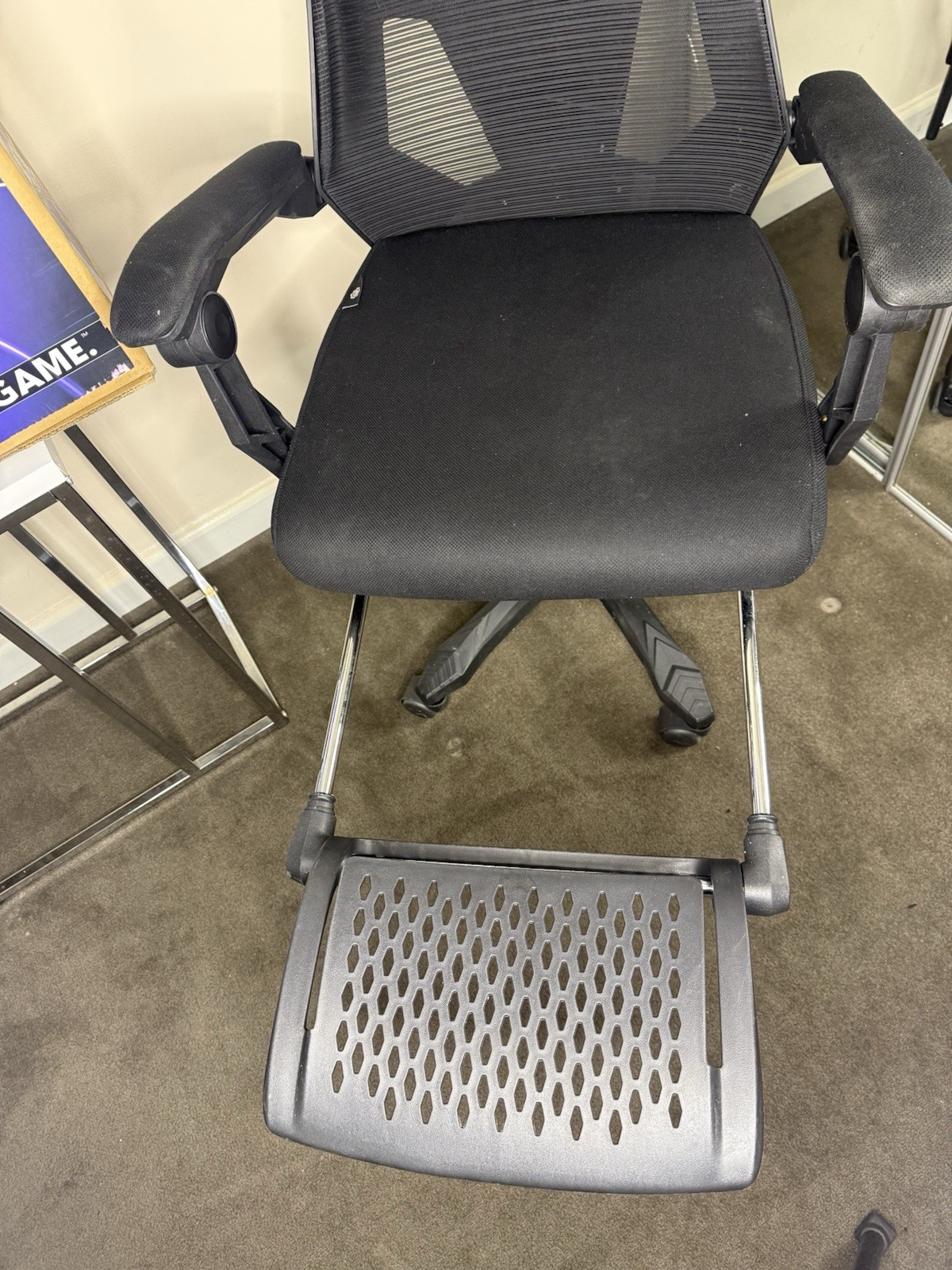 как выглядит Gamer Gear Black Adjustable Ergonomic Gaming Chair Mesh Back Footrest фото