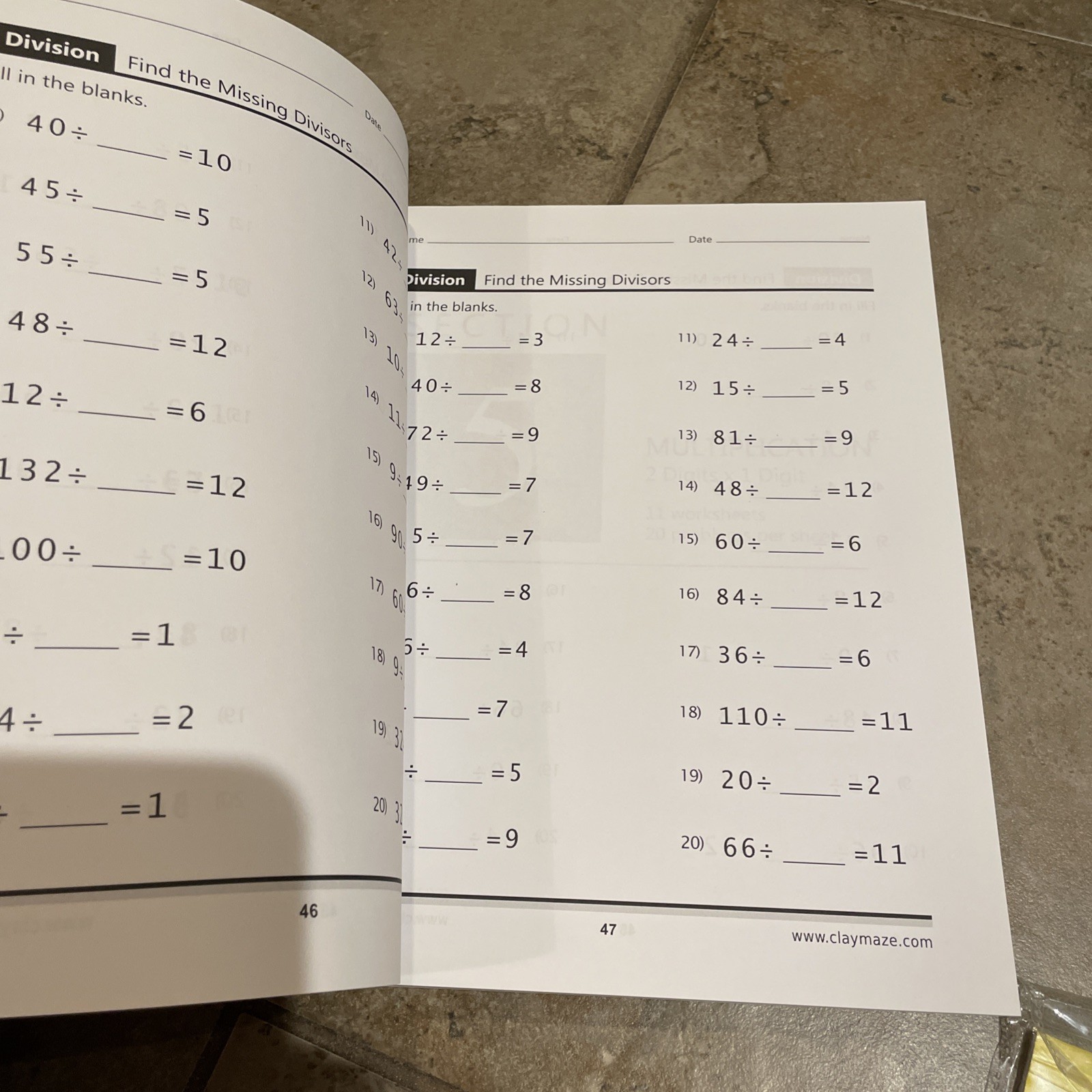 • Math Multiplication Division Practice Workbook Worksheet Lot Grades 3-5 School