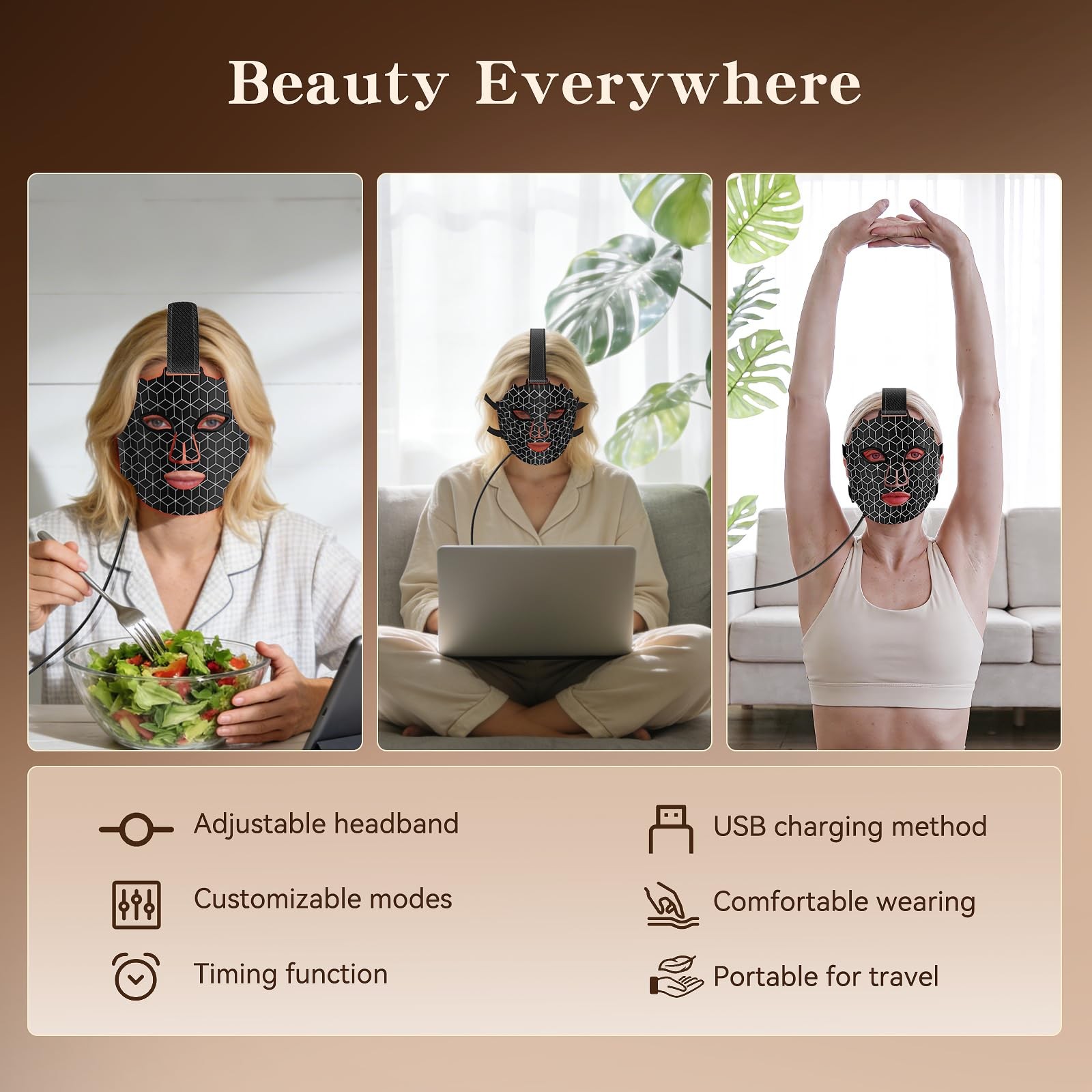 Vnvfd Red Light Therapy Mask for Face, 4 Modes 1 Count Pack of 1 , Black