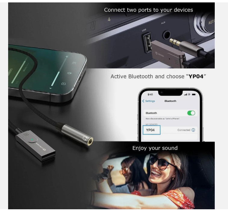 как выглядит Bluetooth 5.3 to Aux Adapter for Car or Amp, USB to 3.5mm Female Bluetooth Re... фото