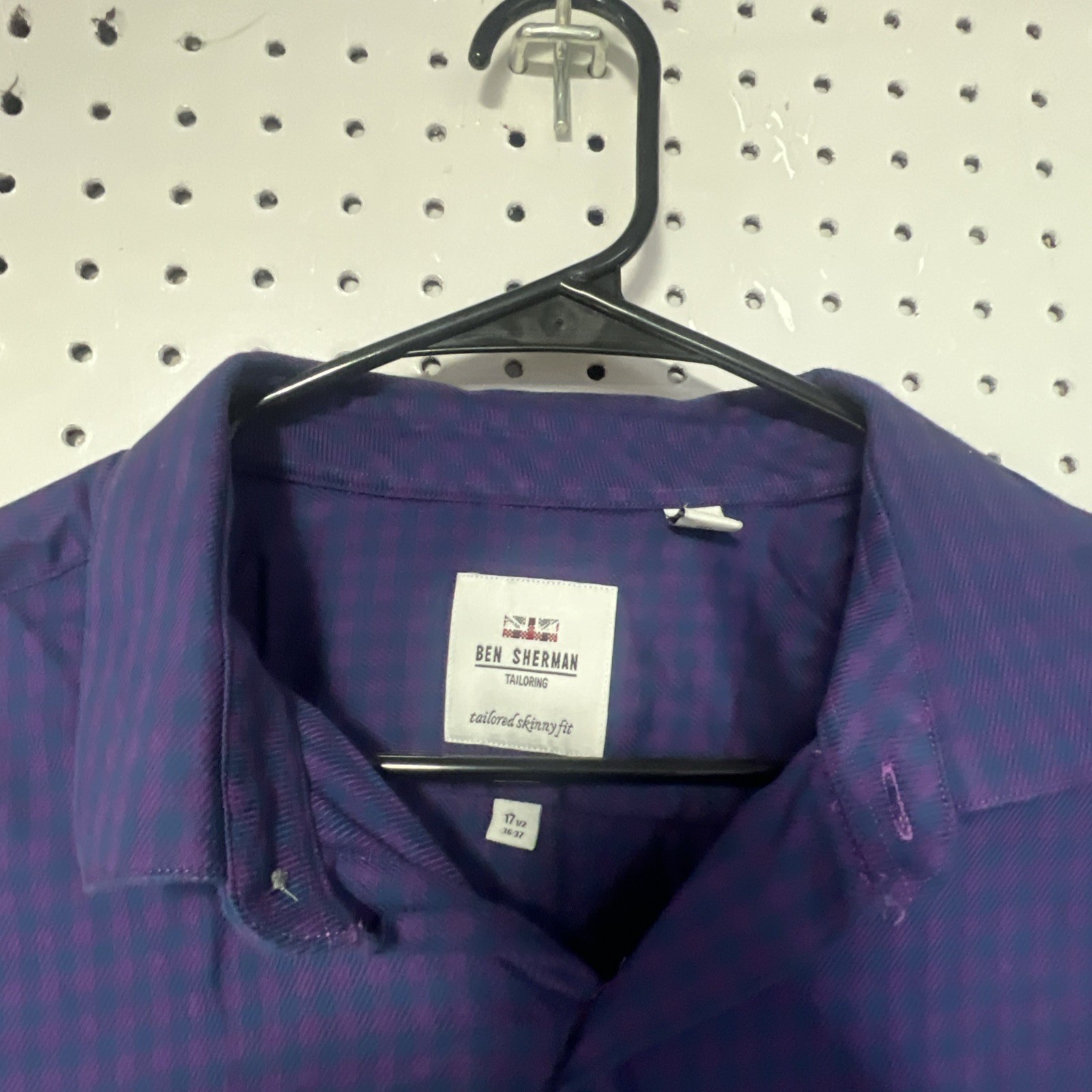 как выглядит Ben Sherman Tailored Skinny Fit Button Down Dress Shirt Purple Size 17.5 36-37 фото