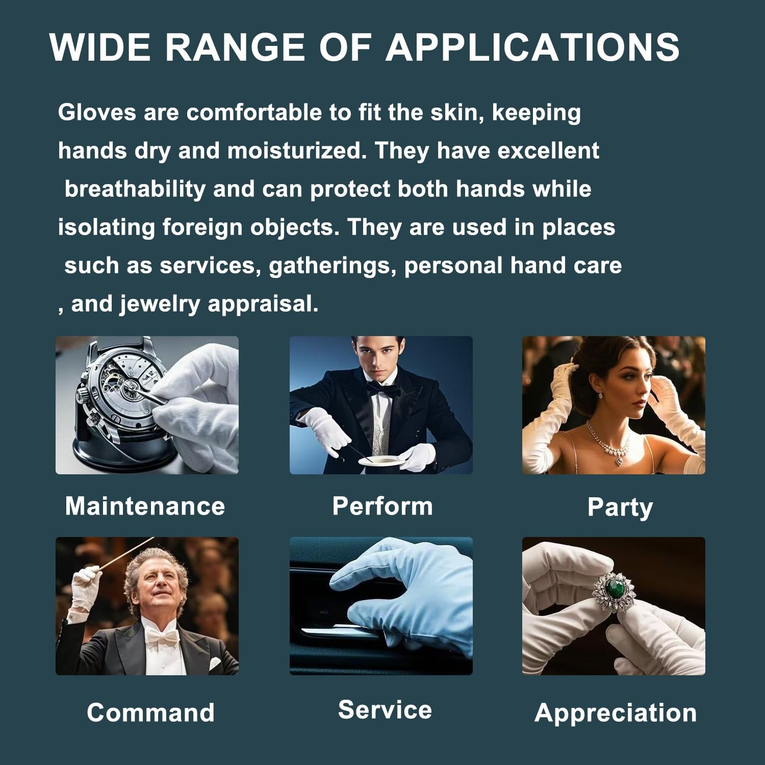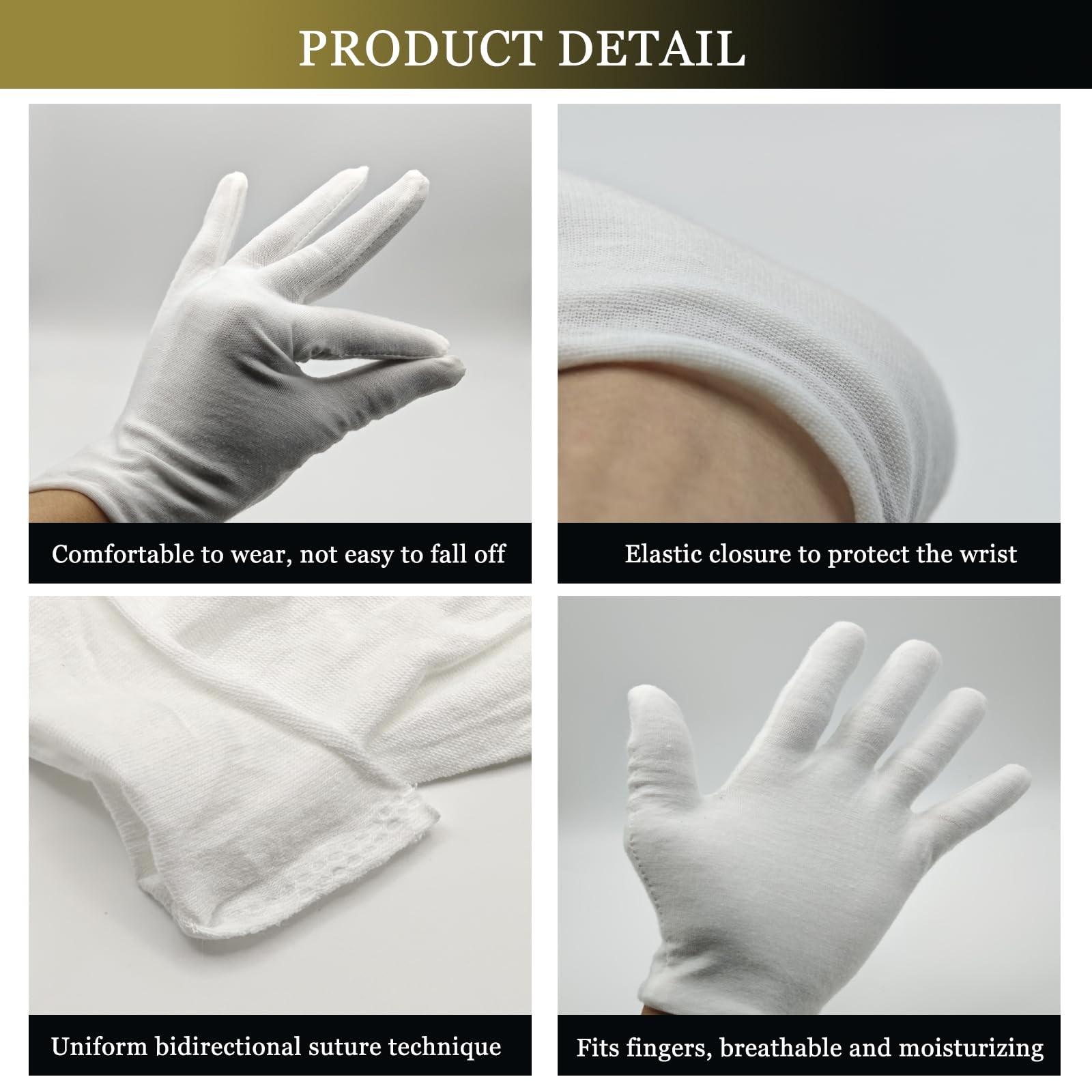 Organic Cotton Moisturizing Hand Gloves, 6 Pairs, White, 6pair, White