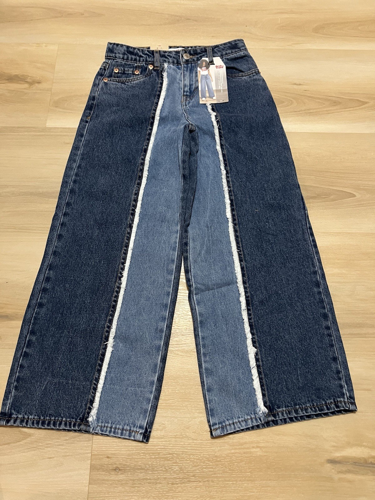 NWT Levi's Girls High Rise Baggy Shade Blocked Jeans Size 7 Wide Leg Youth Kids