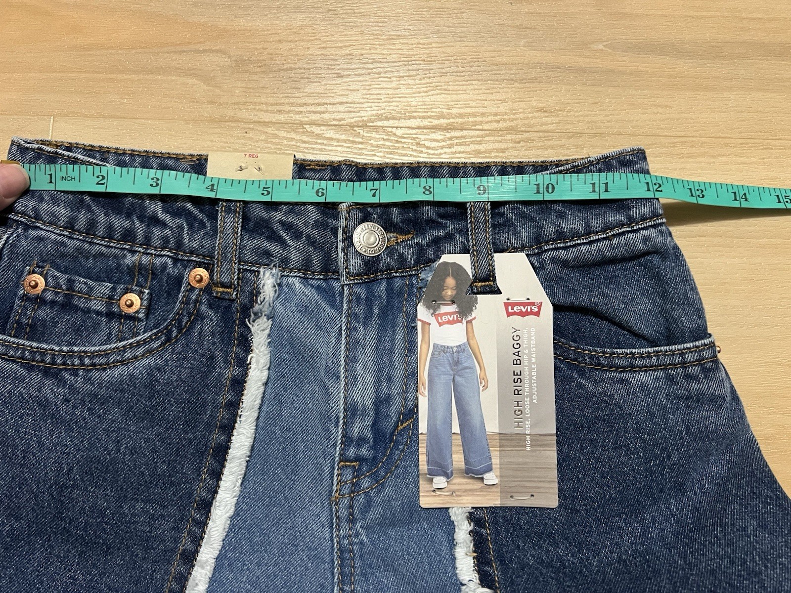 как выглядит NWT Levis Girls High Rise Baggy Shade Blocked Jeans Size 7 Wide Leg Youth Kids фото