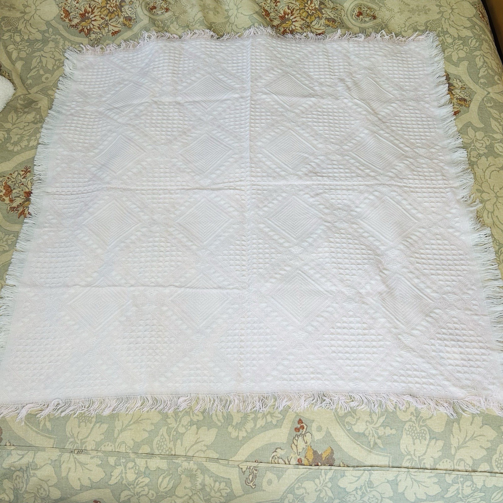 как выглядит Vintage Pastel Pink 100 Acrylic Baby Blanket Fringe Made Japan Square 38x38 фото