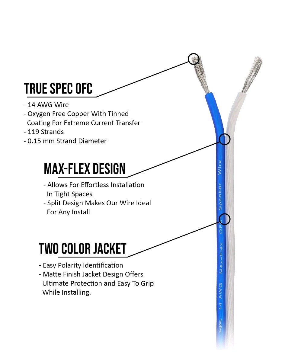 Skar Audio Elite 14 Gauge Oxygen-Free Copper Speaker Wire - 30 Feet Blue/White