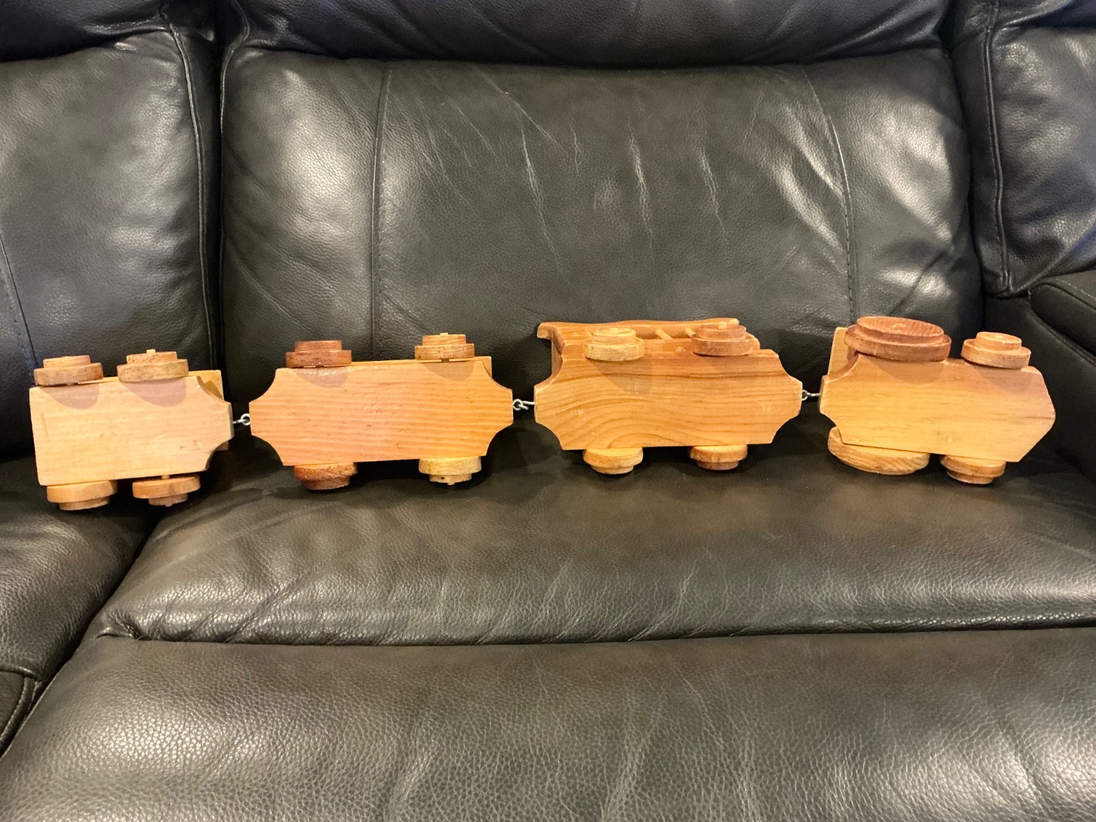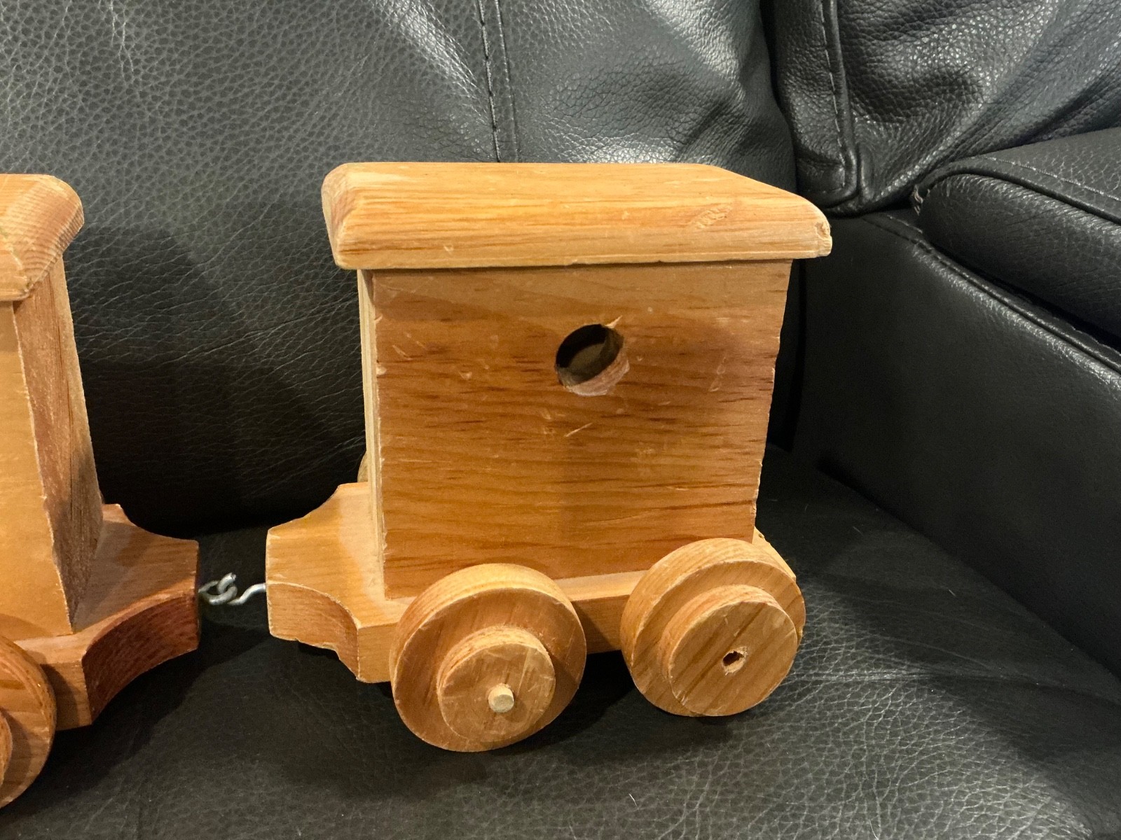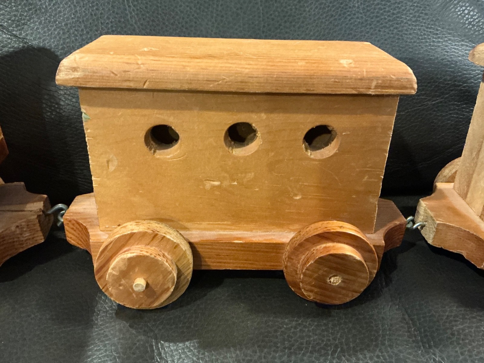 Vintage 1980 s handmade wood wooden train set with 4 cars