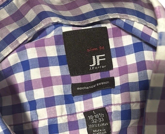 JF J. Ferrar Slim Fit Button Down Shirt Size 16-16 1/2. 32/33. Purple Blue White
