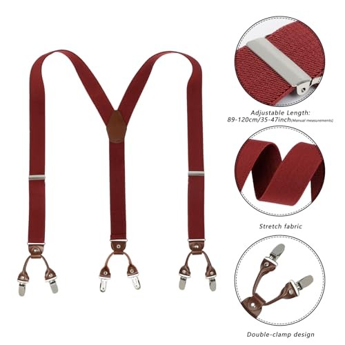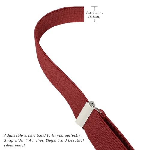 Suspenders for Men with leather 6 Heavy-Duty Clips, 1.4 Inches Wide Men's Red