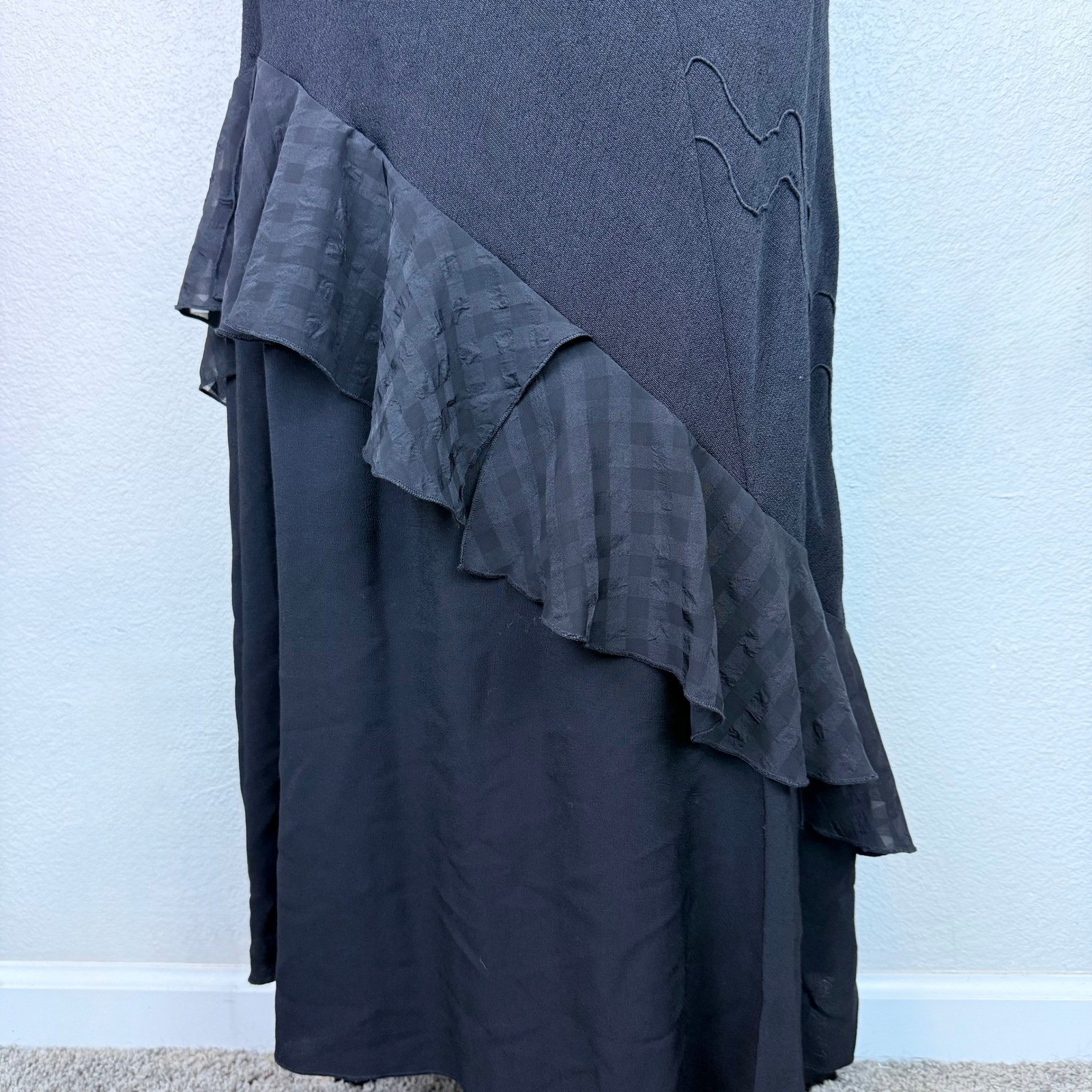 как выглядит VTG Eoeo Juan Black Asymmetrical Ruffle Fairy Maxi Skirt Embroidered Whimsy 2 фото