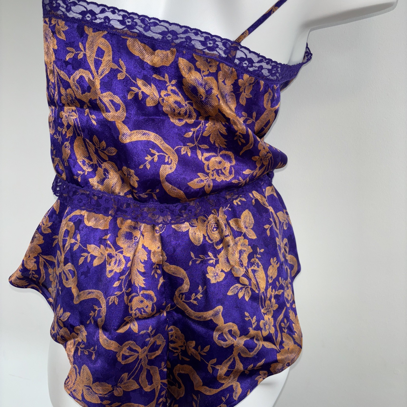 как выглядит Vintage Victoria s Secret Gold Label Purple Floral Lingerie Set S Y2K Flutter фото