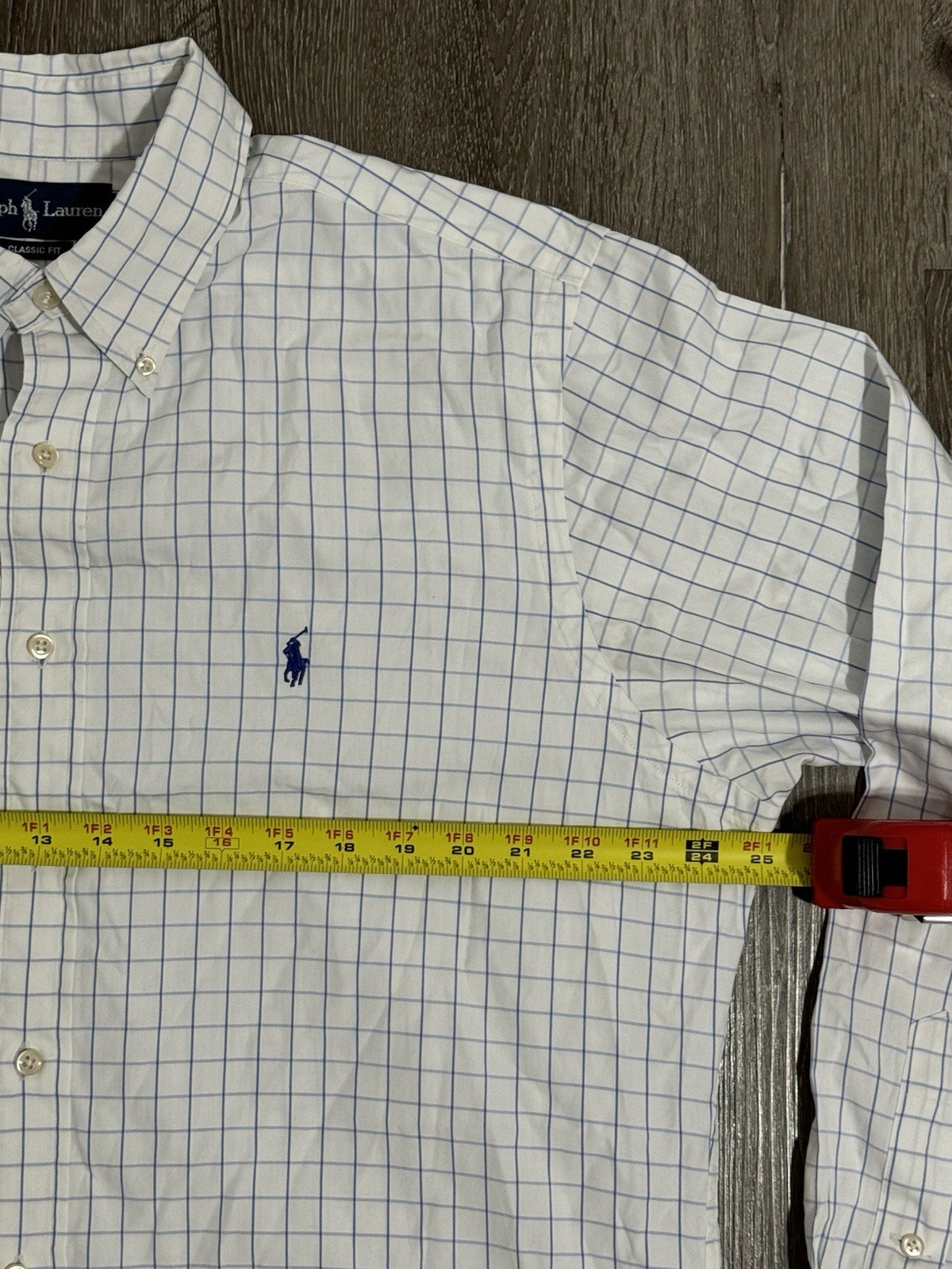 Polo Ralph Lauren Dress Shirt Mens 16.5 34 Blue Plaid Button Down Classic Fit
