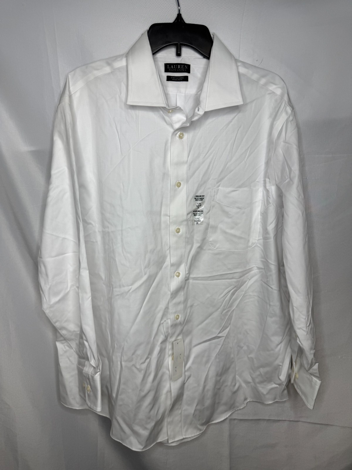 NWT Lauren Ralph Lauren Mens White Stretch Regular Fit Dress Shirt Size XL 17.5