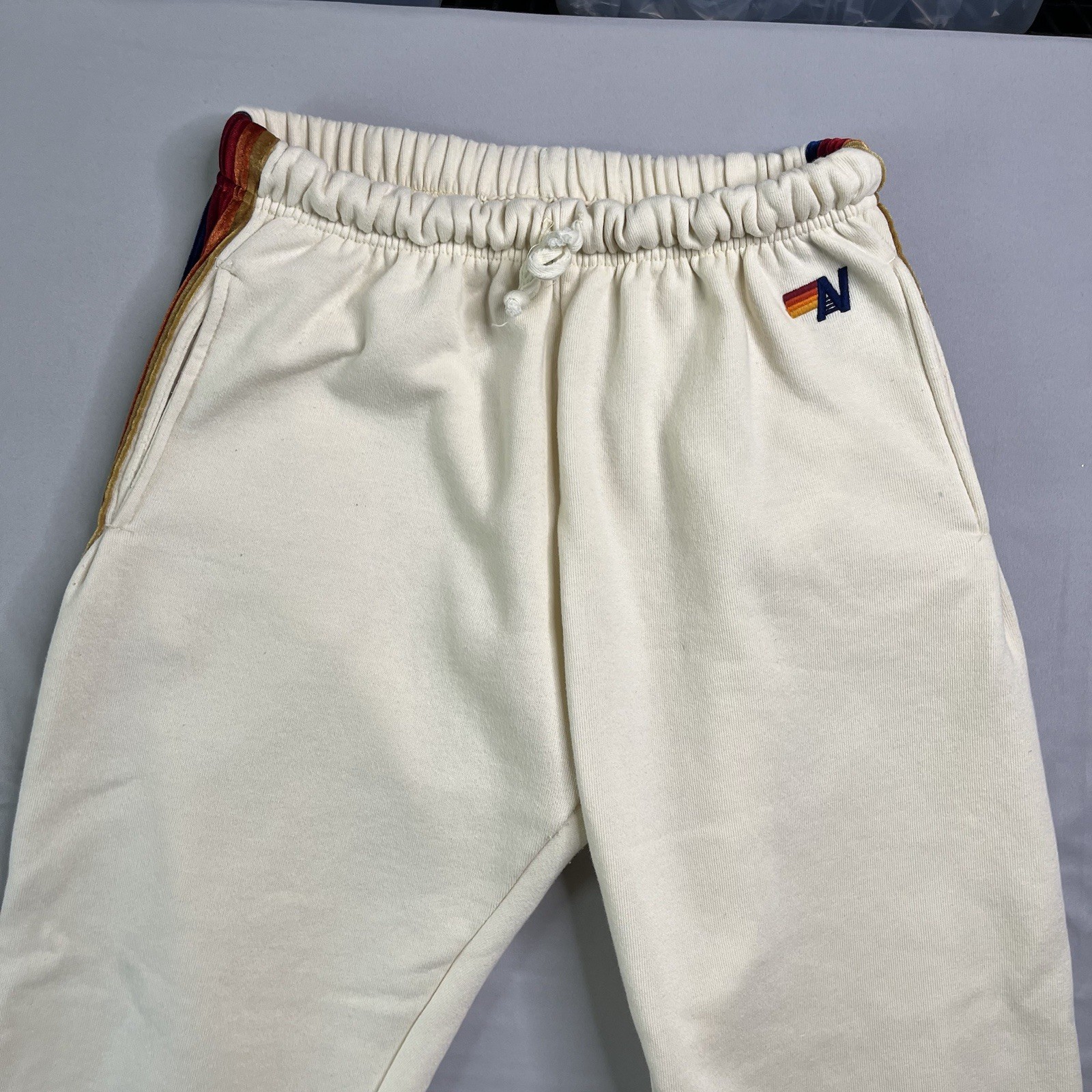 как выглядит Aviator Nation Sweatpants Womens Large Cream Rainbow Stripe Jogger Pants Casual фото