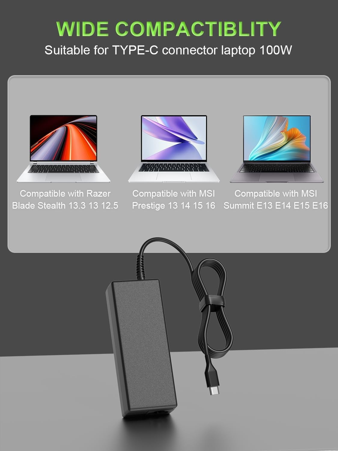 100W 65W USB C Charger Compatible with Razer Blade Stealth 13 T37-5