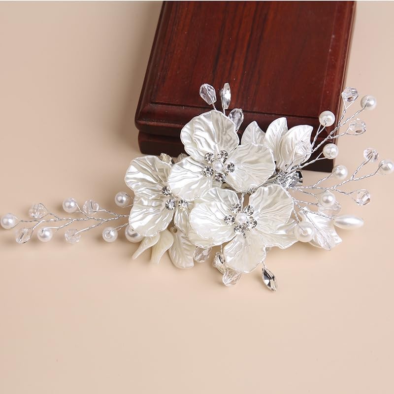 White Flower Hair Clips Wedding Pearl Hair Accessories Bridal Hair Piece Women