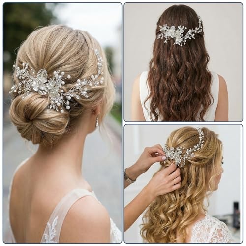 Crystal Wedding Hair Pieces for Brides, Rhinestone Bridal Hair Comb, Elegant