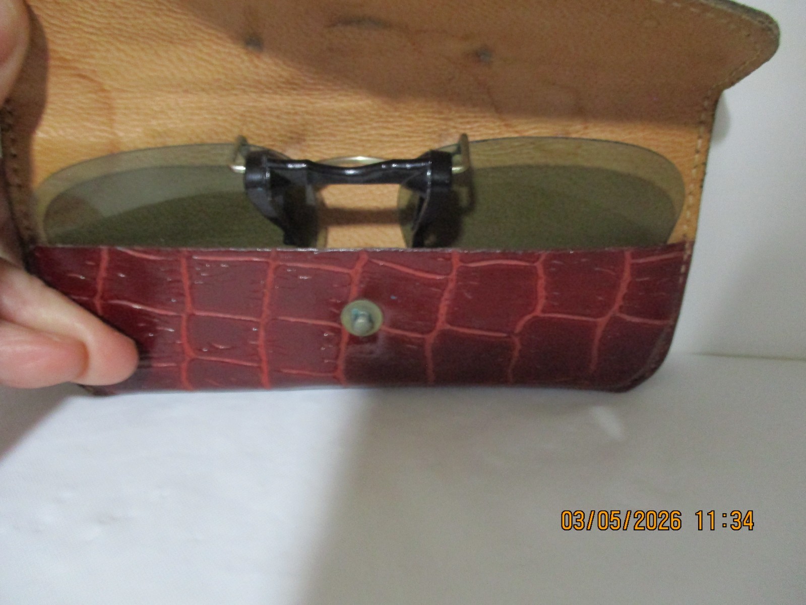 как выглядит VTG 1960s Clip On Flip Up Green Lens Sunglasses Original Optical Leather Case фото