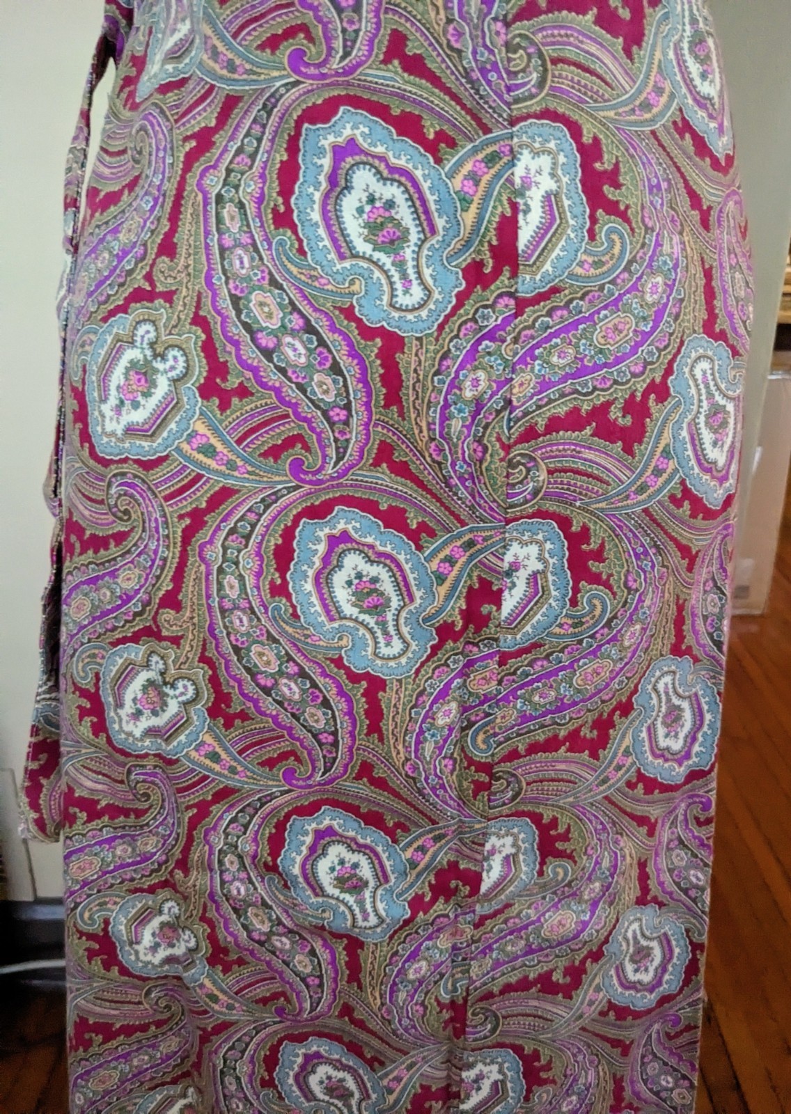 как выглядит Vintage 1960s Paisley Wrap Skirt Cotton Boho Hippie Festival Maxi 37" Long фото