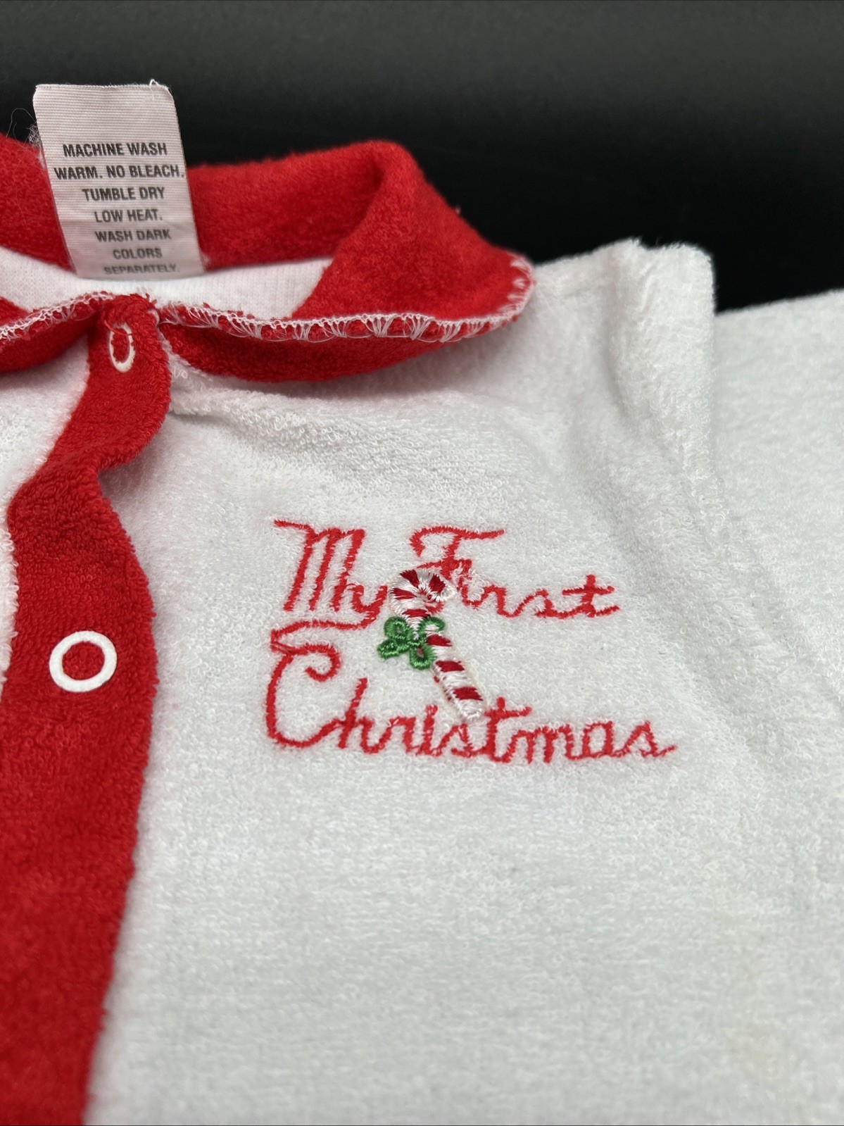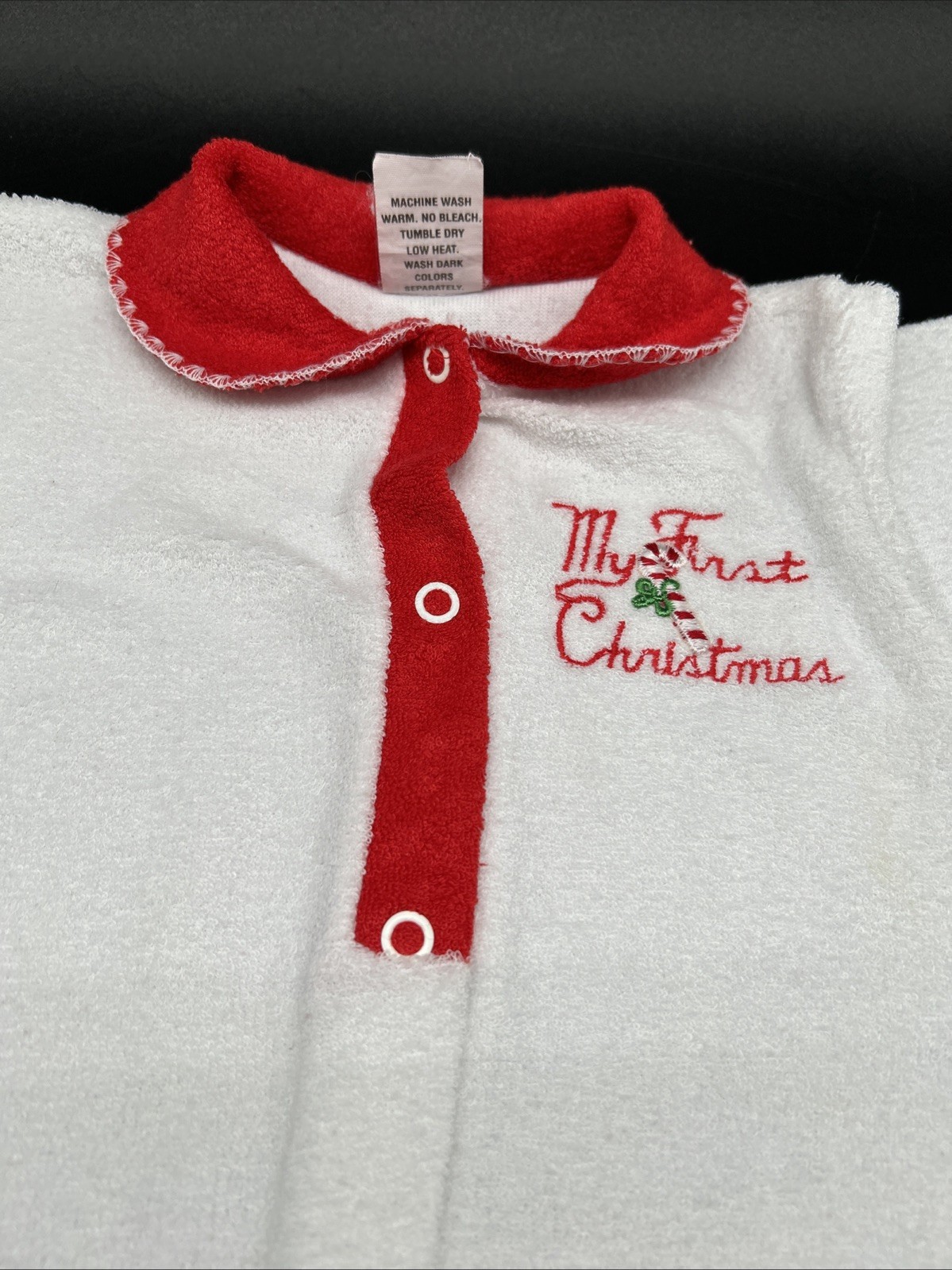 Vintage Baby Pajamas My First Christmas Trimfit Terry Cloth Footed One Piece