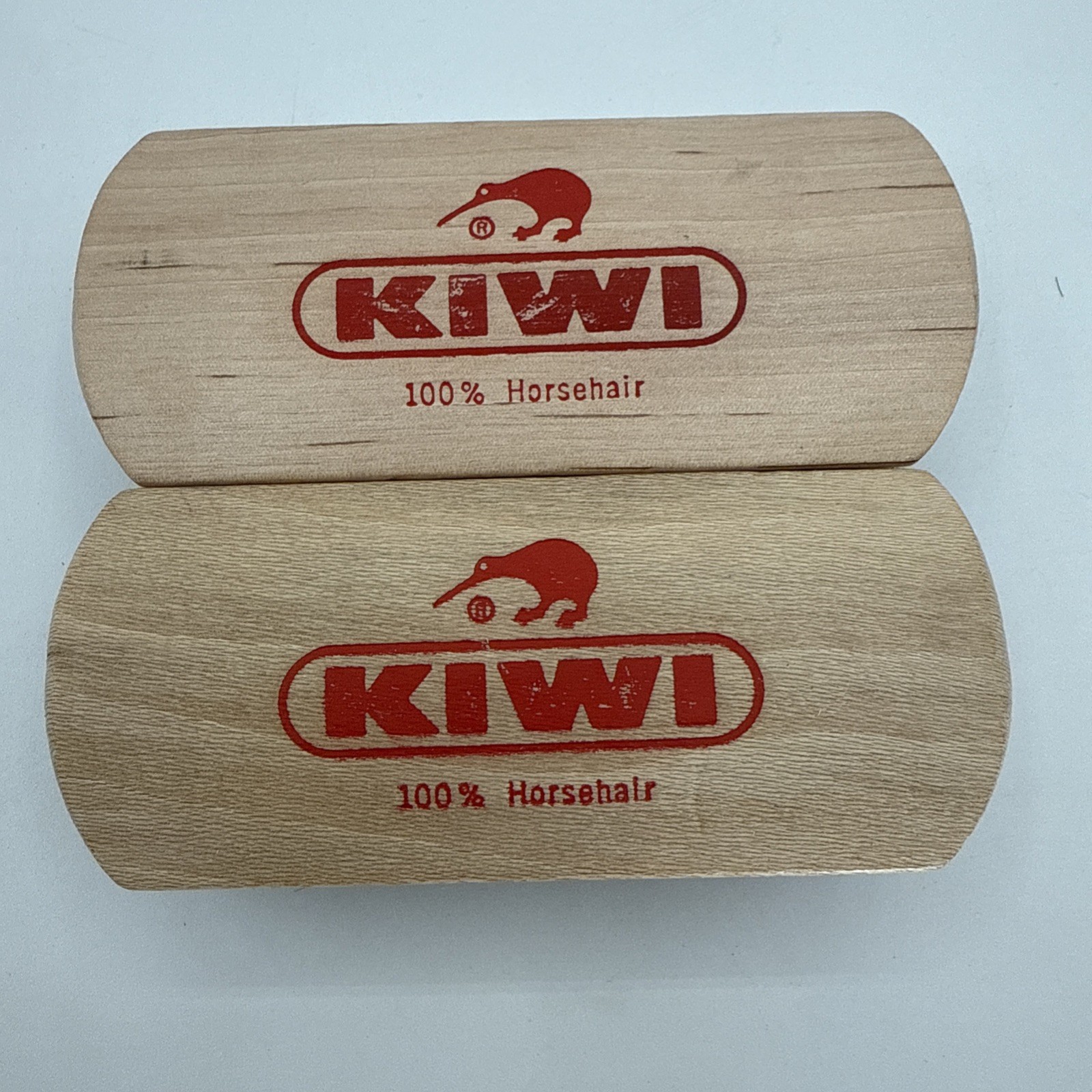 KIWI Shoe Shine Brush 100 Horsehair Bristles Wood Handle 2 Pack Brown 5.5