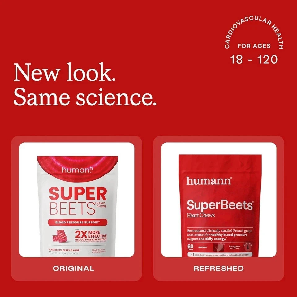 Humann SuperBeets Heart Chews: Nitric Oxide Blood Pressure Support, 60 Count