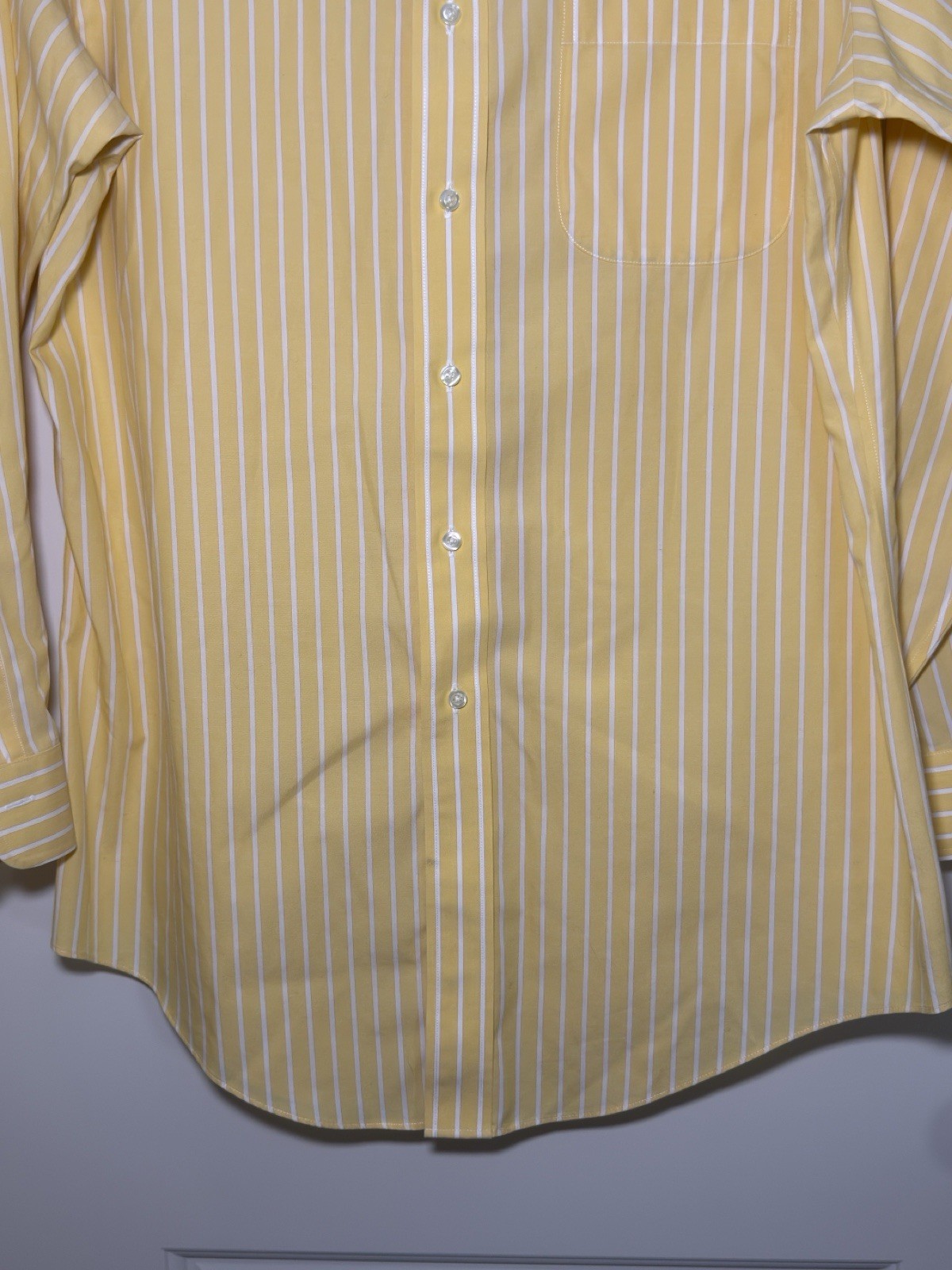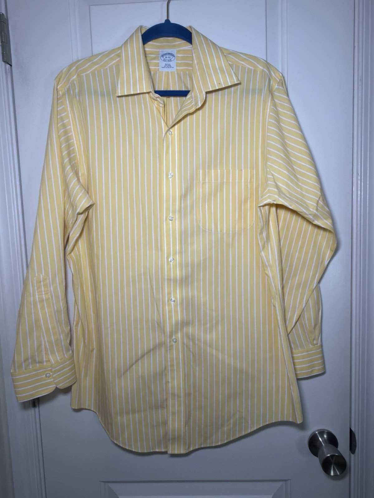 Brooks Brothers Dress Shirt Mens 16-33 Button Down Yellow Stripe Non Iron Slim