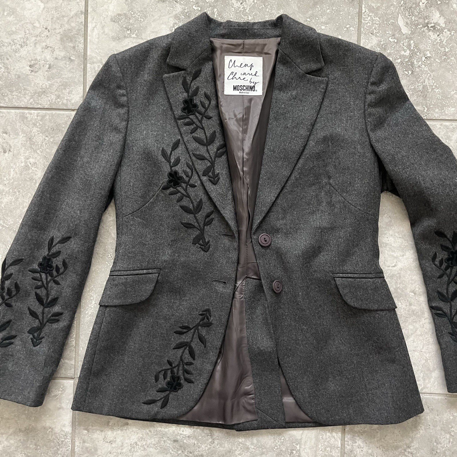 Moschino Cheap Chic Wool Single Breasted Button Blazer Jacket Embroidered USA 10