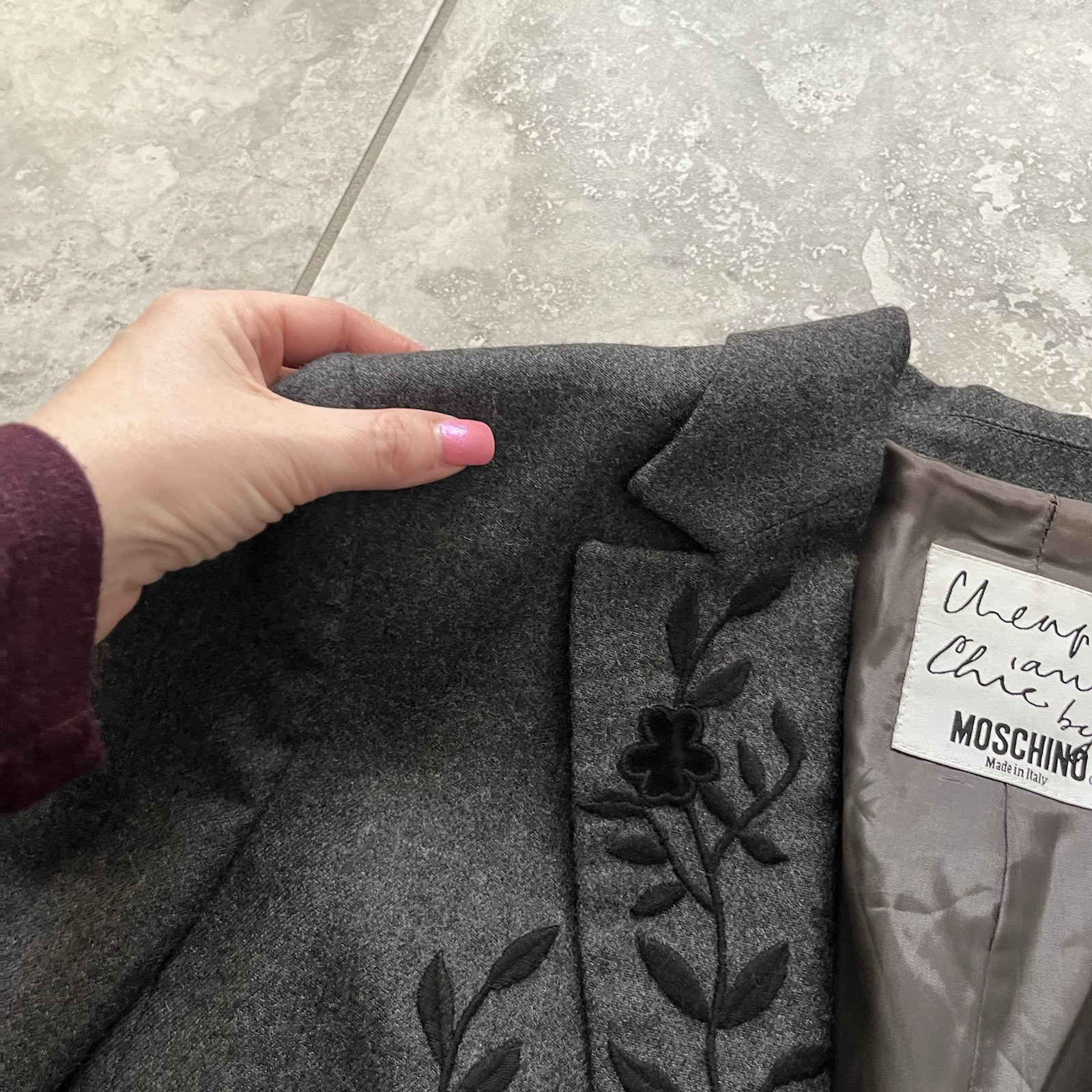 как выглядит Moschino Cheap Chic Wool Single Breasted Button Blazer Jacket Embroidered USA 10 фото