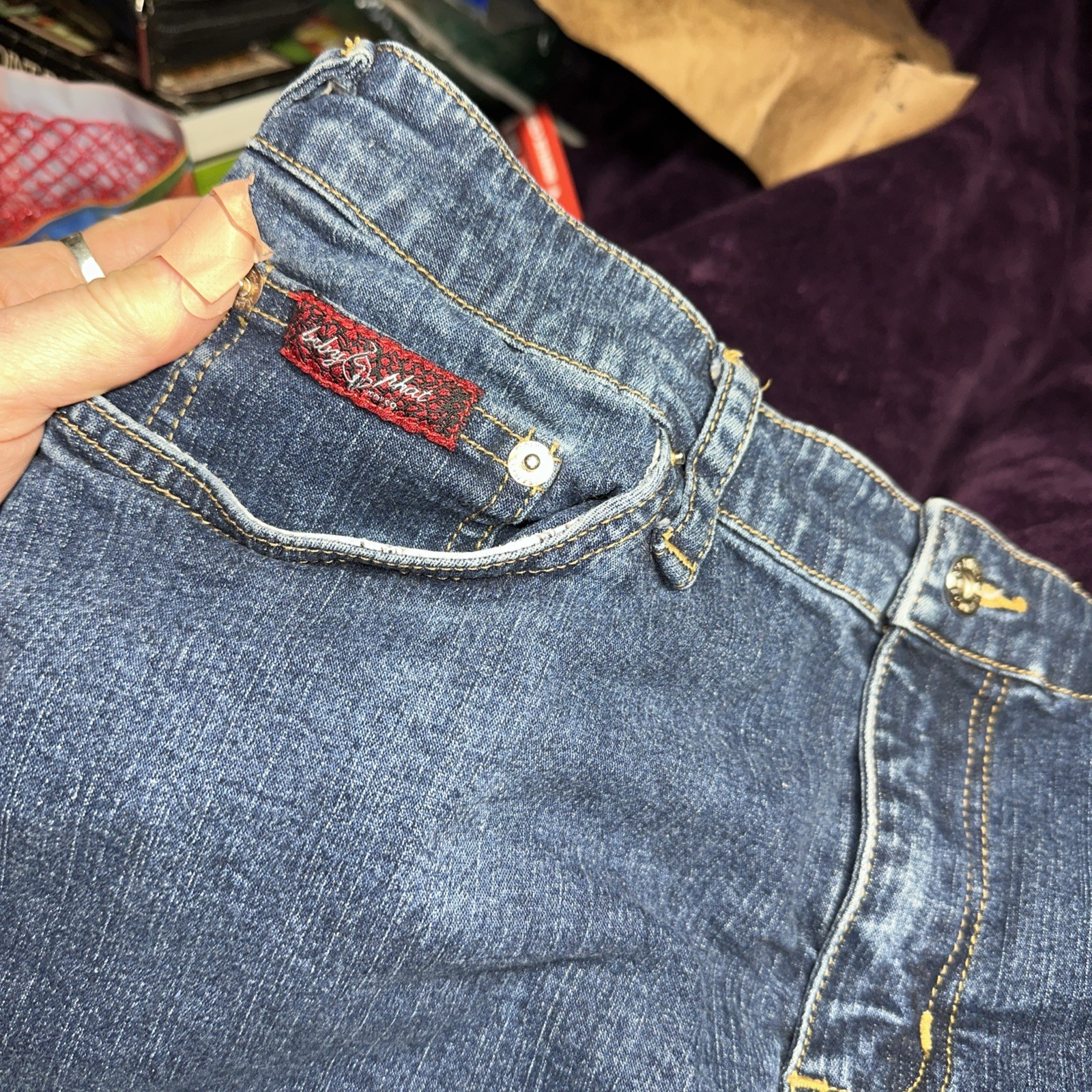 как выглядит Baby Phat Denim Skirt Junior 13 Rhinestone Blue Med/Dark Wash фото