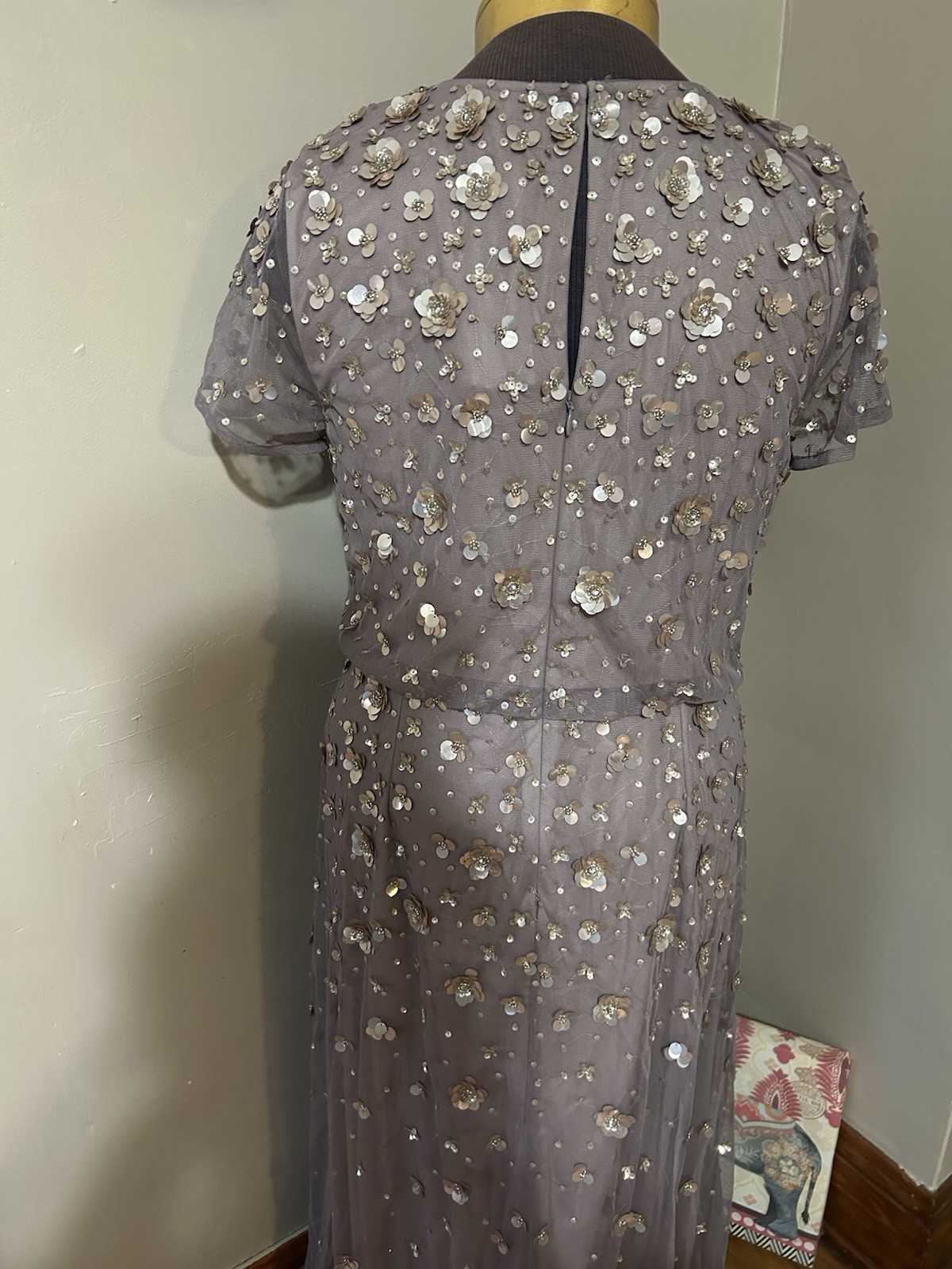 как выглядит ADRIANNA PAPELL Blouson Beaded 3d Floral Gown Formal Mother Of The Bride 16 фото
