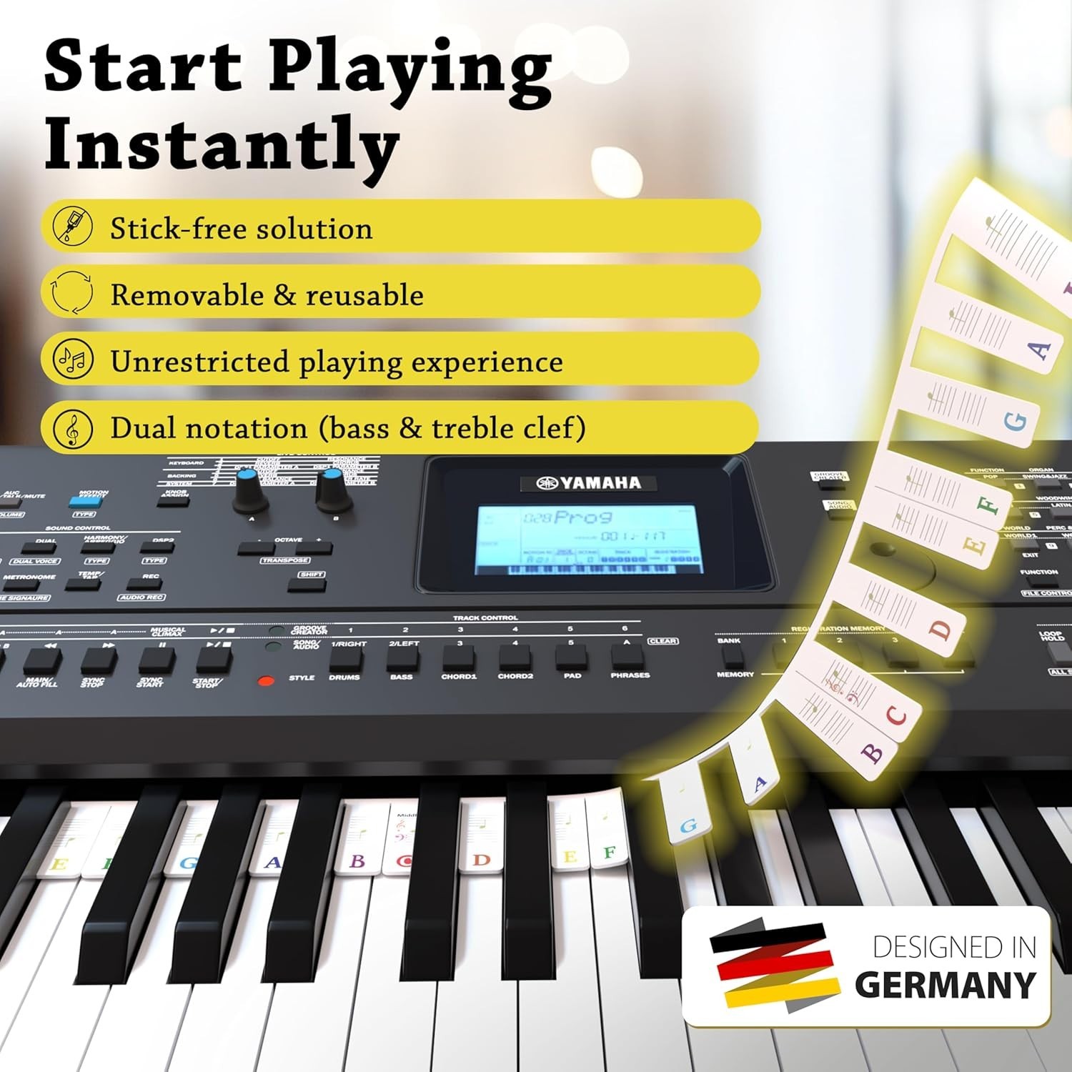 Removable Color-Coded Piano Stickers Reusable Silicone Note Labels for 88 Keys