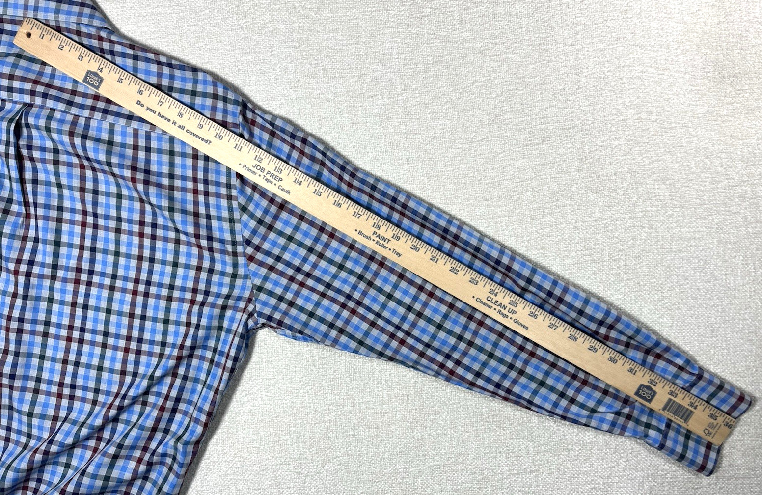 как выглядит Peter Millar Dress Shirt Mens Large Blue Check Plaid Button Long Sleeve Casual фото