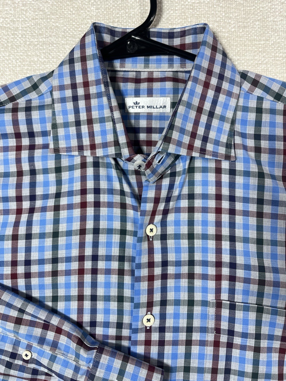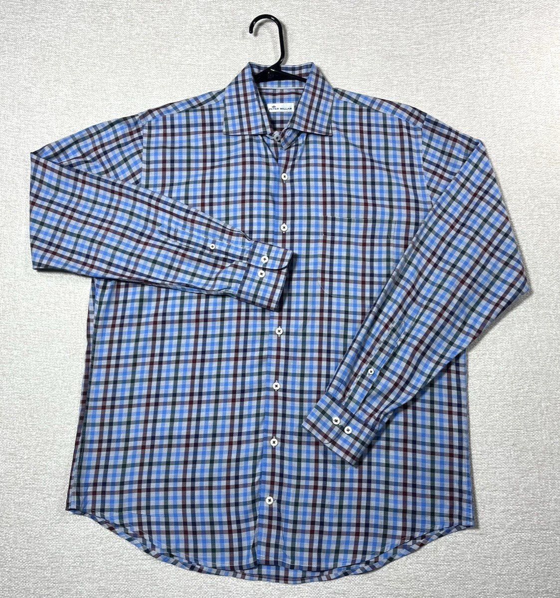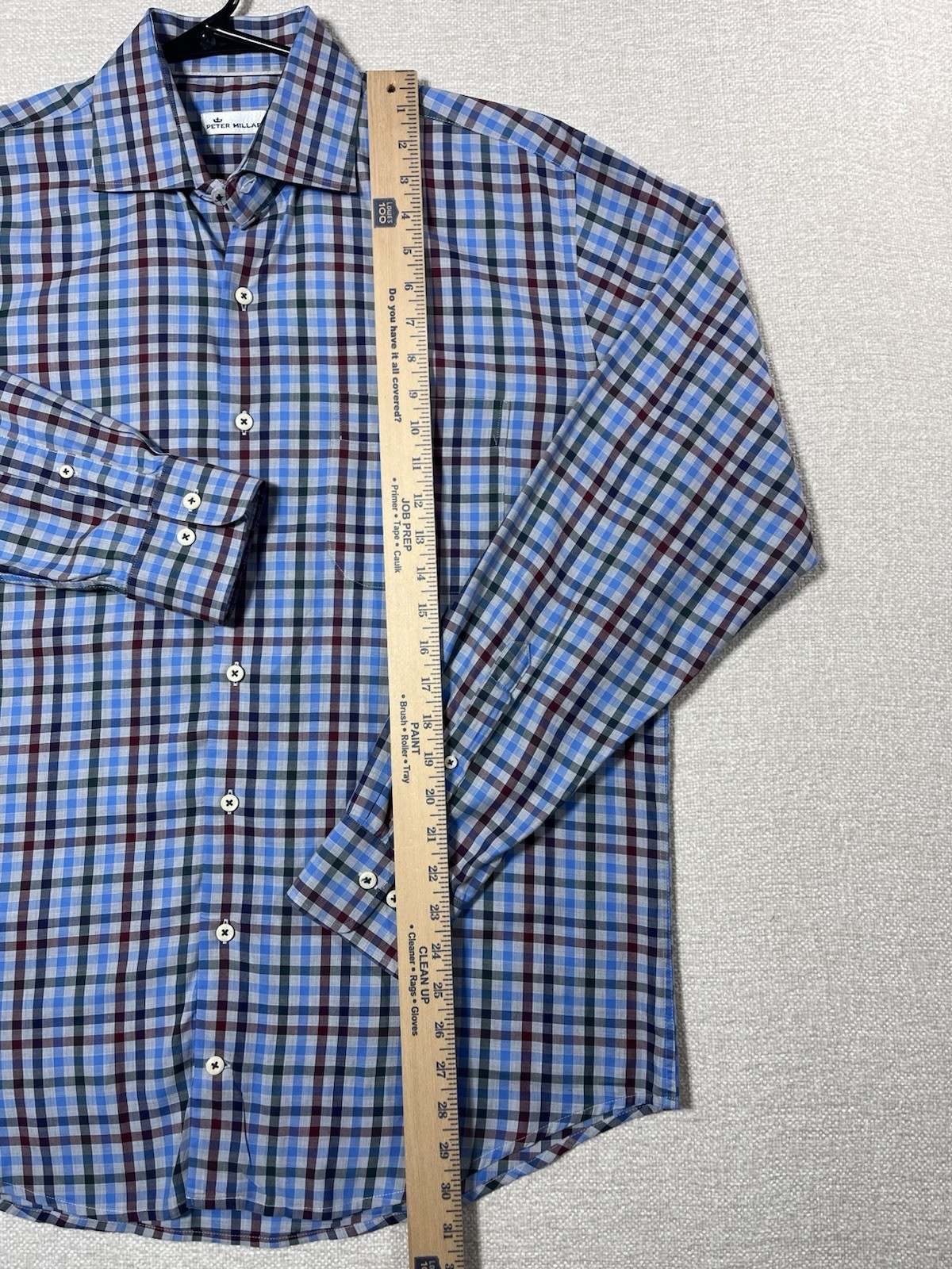 Peter Millar Dress Shirt Mens Large Blue Check Plaid Button Long Sleeve Casual