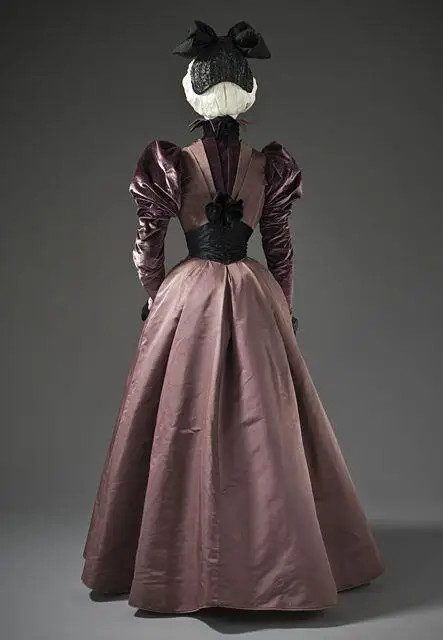 1890s Victorian Edwardian Duchess Velvet Day Dress Women Gothic High-neck Gown
