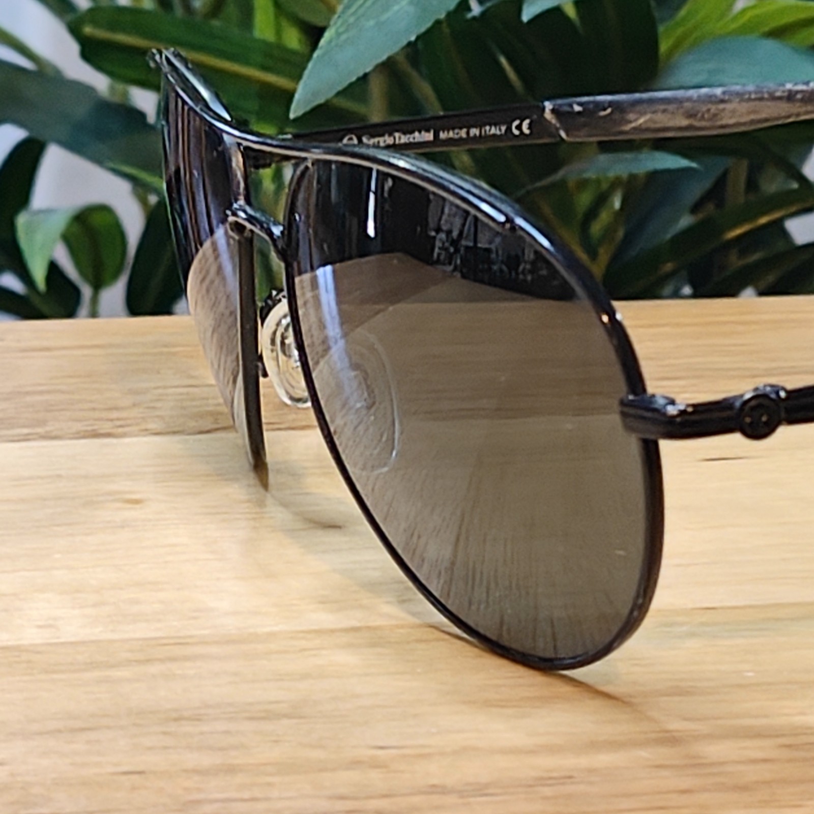 как выглядит Vintage Sergio Tacchini Sunglasses Mens Aviator Italy Black S.T. 1051-S Read фото