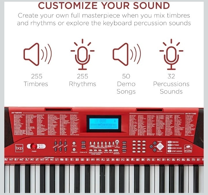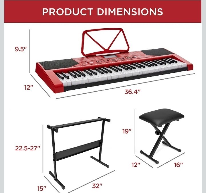 NEW 61-Key Beginners Complete Electronic Keyboard Piano Set W/Lighted Keys RED