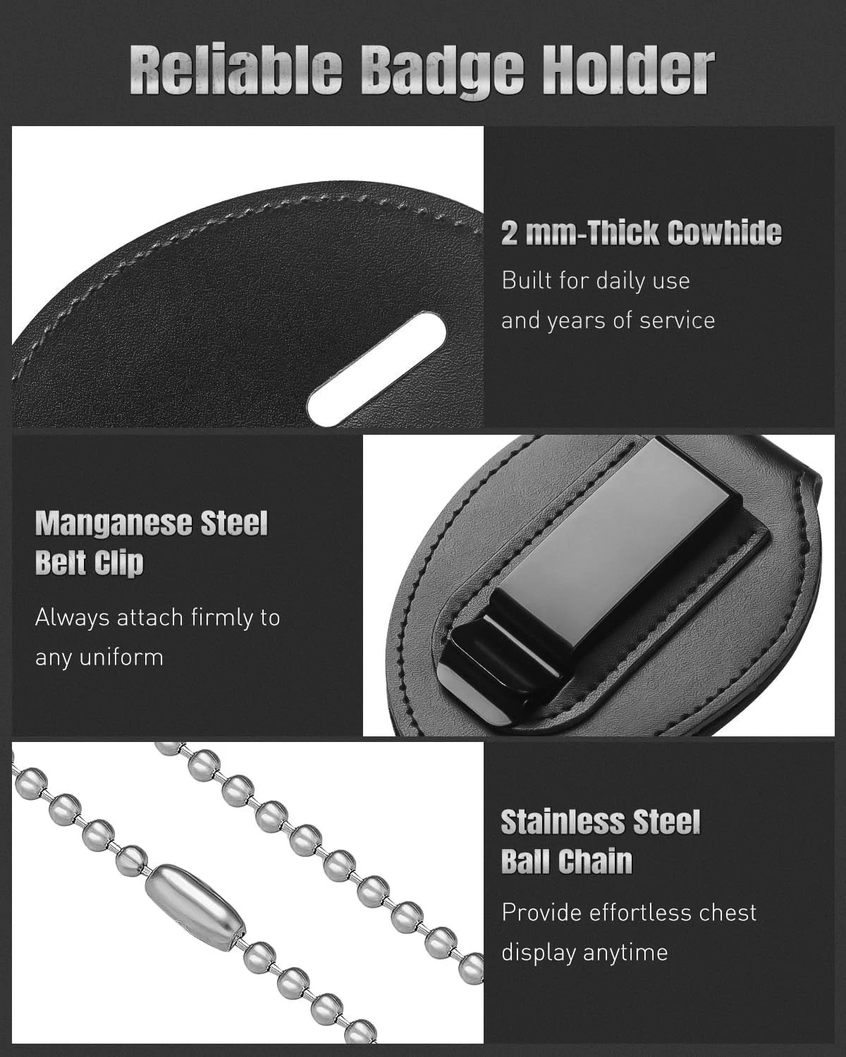 Police Badge Holder, Cowhide Law Enforcement Badge Holder with Metal Belt Clip