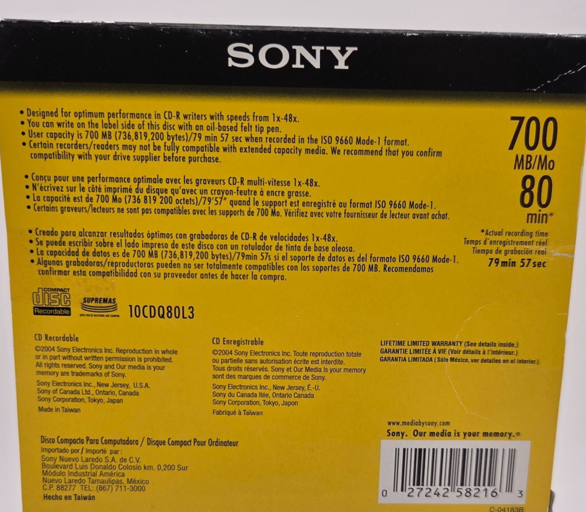 Sony CD-R 700MB 80 Min 1x-48x Blank Recordable Discs 9 Pack Slim Jewel Cases